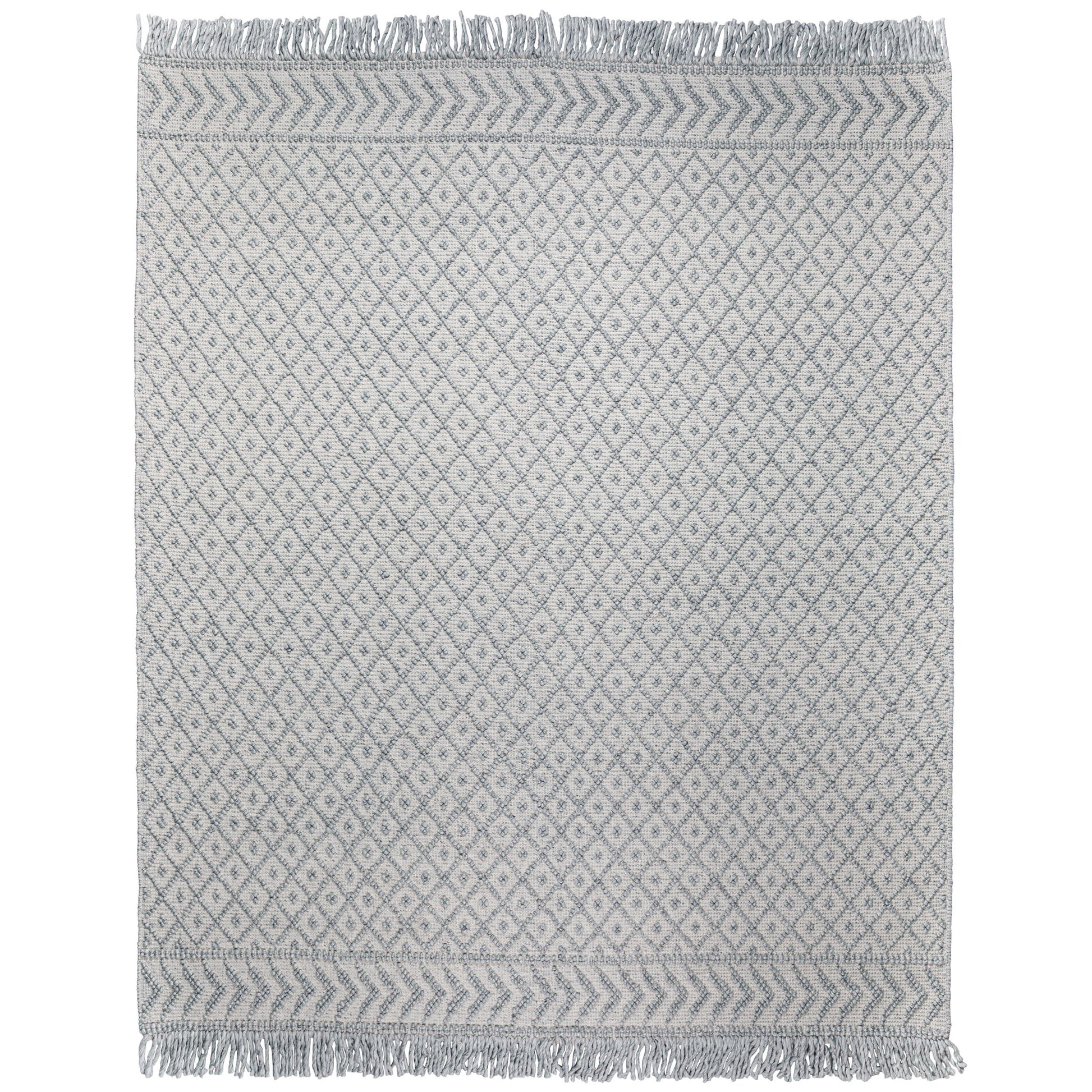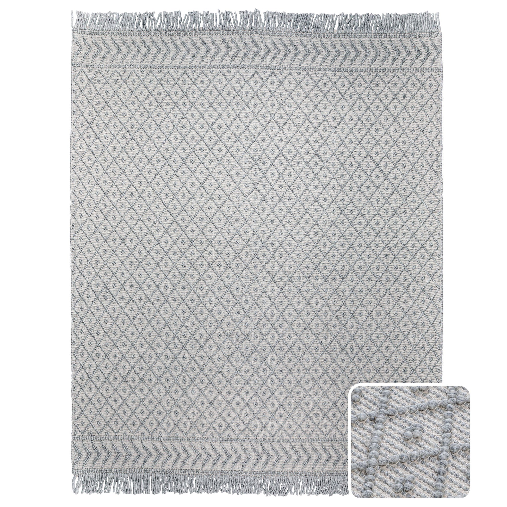 - Detailed with a geometric pattern in silver grey featuring a hand-knotted fringe