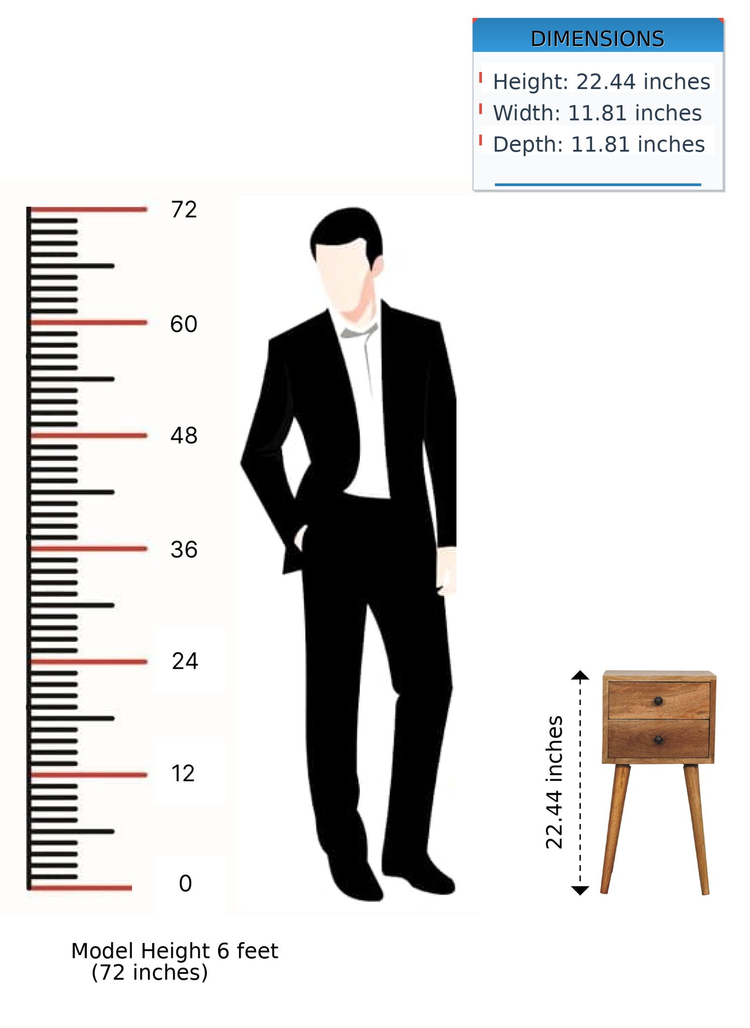 - Mini 2 Drawer Nightstand - This beautifully designed bedside is constructed from 100% solid mango wood and has a fine finish. It features 2 small drawers giving the piece extra character and dimension. It has 4 Scandinavian-style legs to modernize your home and can be fitted in a tight compact space to go in any type of home interior.