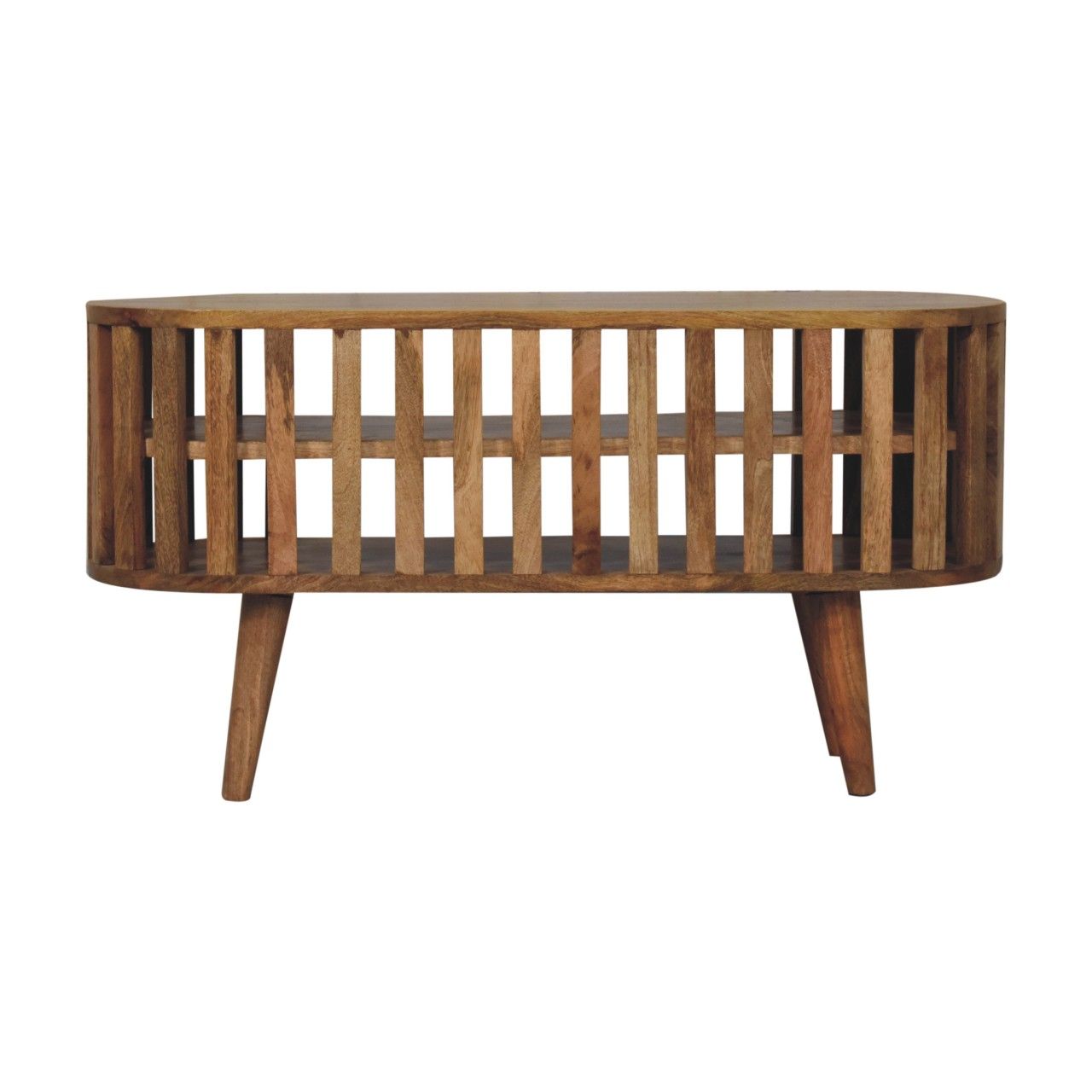 - Artisan Furniture Solid Wood Mini Ariella Media Unit - Update your home with our Ariella Media Unit boasting a contemporary Japanese design allowing light to shine through and is constructed from 100% solid mango wood in an oak-ish finish. This is a versatile piece and is perfect for use in the living room.