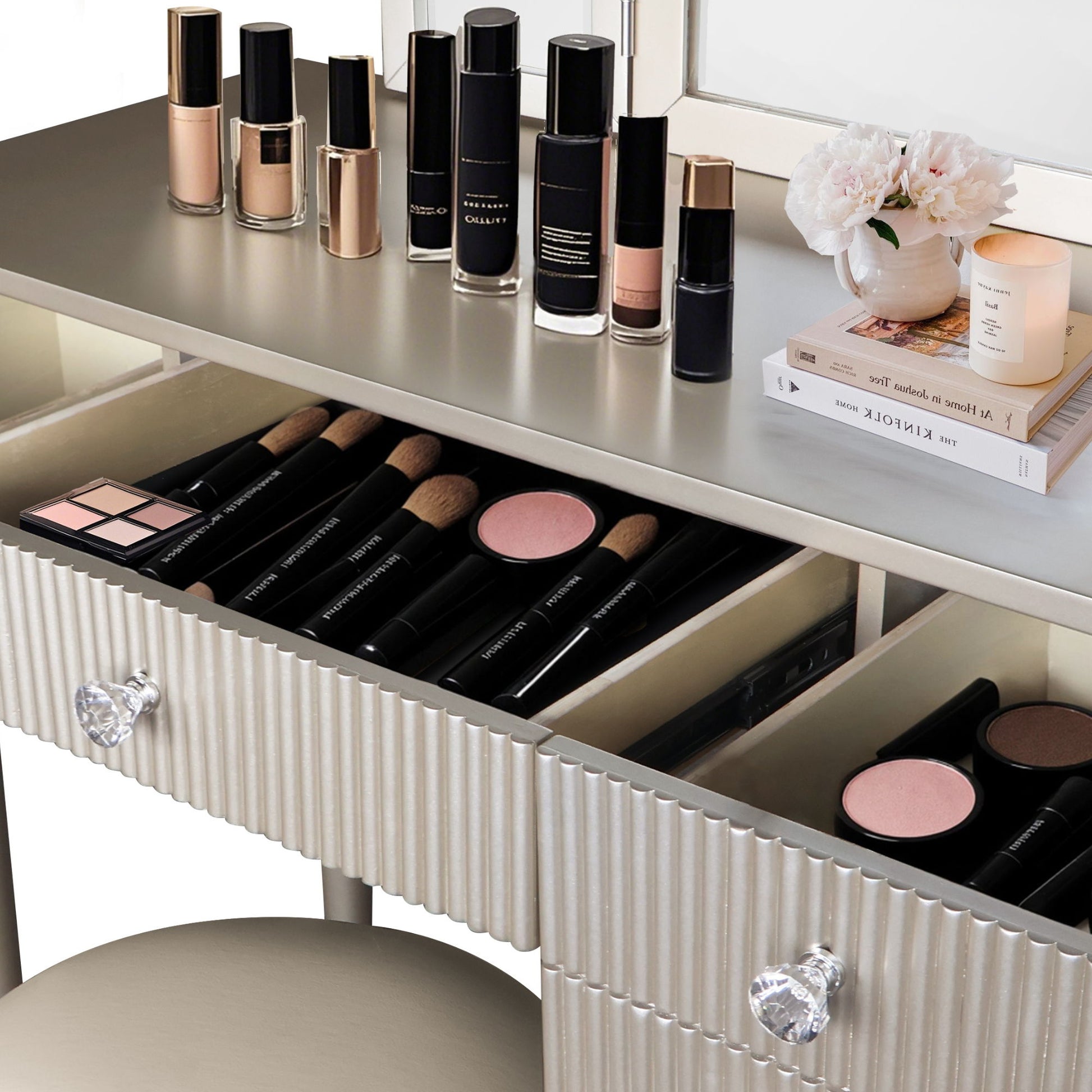 Mirrored Vanity With LED Light,Makeup Vanity Table Set - Champagne