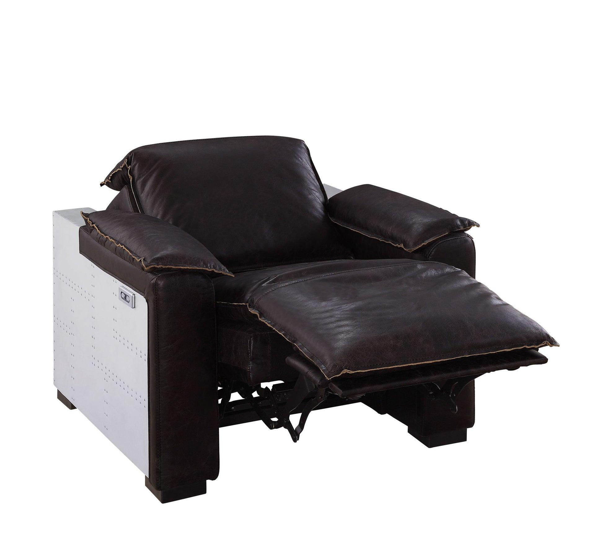 Misezon - Top Grain Leather Power Motion Recliner - Dark Brown