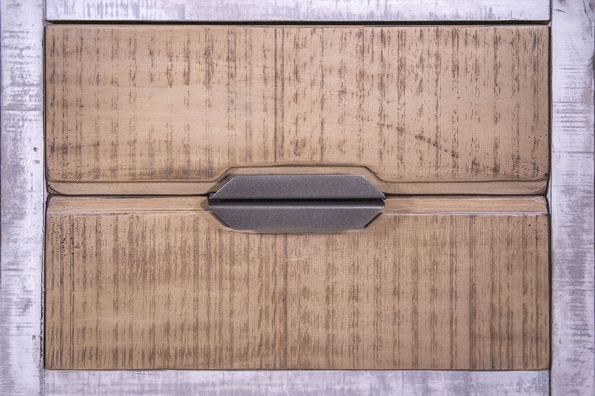 - Multi-step lacquer in honey brown & light gray finish.