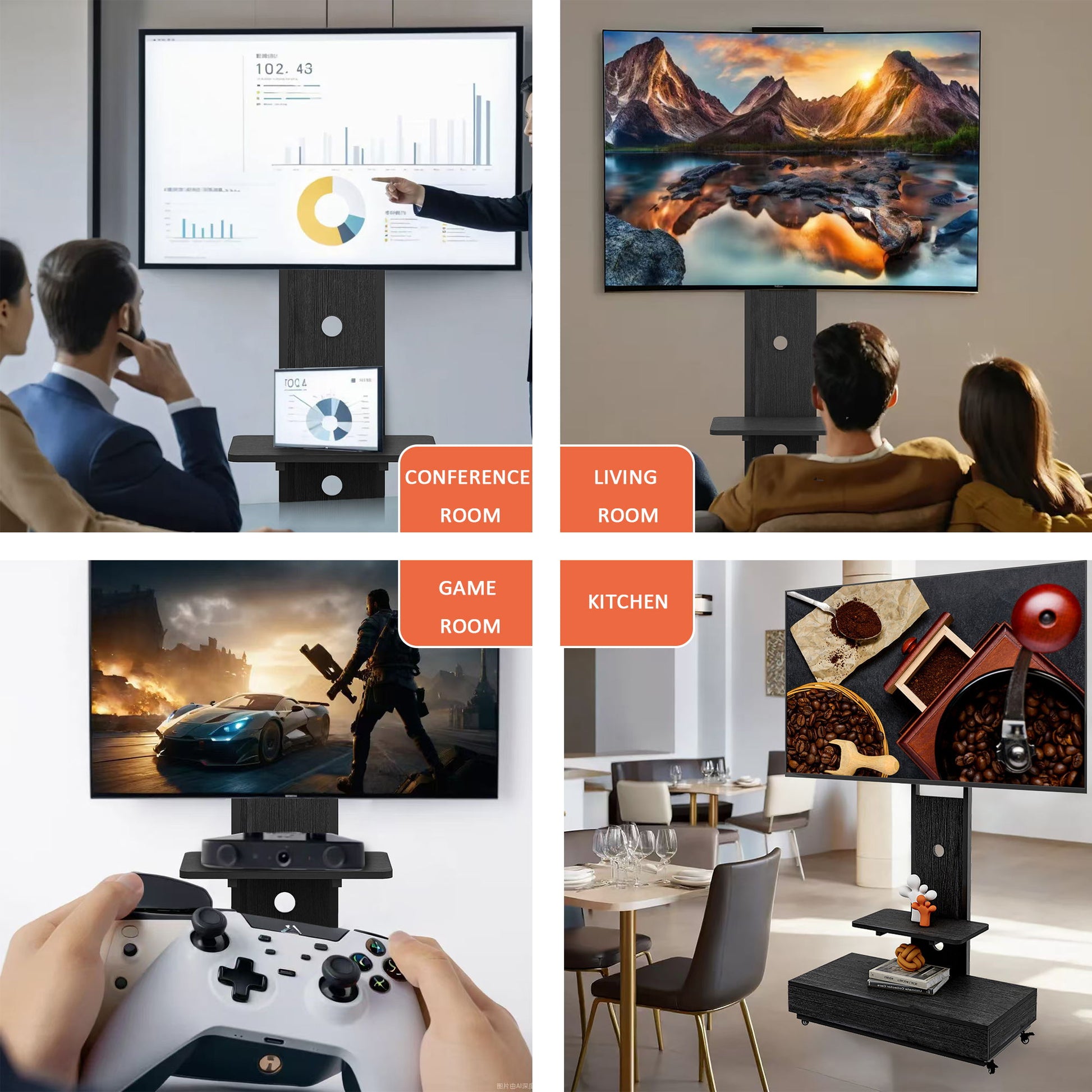 - Flexible Viewing: TV mount adjusts 30° horizontally and 10° vertically for optimal viewing angles.