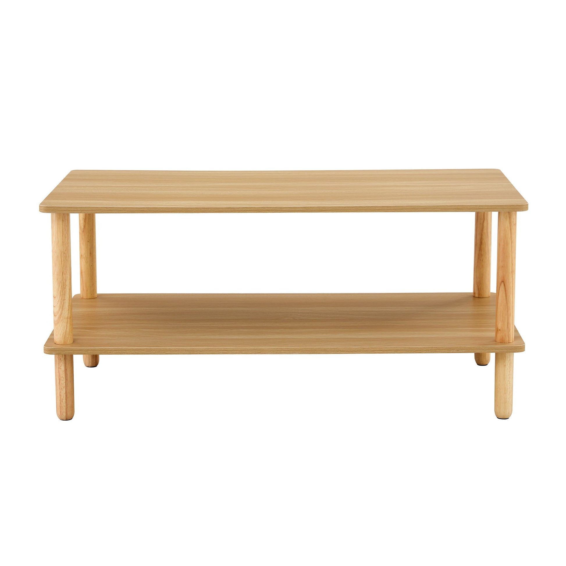 Modern 2 Tier Coffee Table For Living Room Furniture, Rectangular Center Table With Open Storage Shelf, Rounded Rubberwood Legs - Burly Wood
