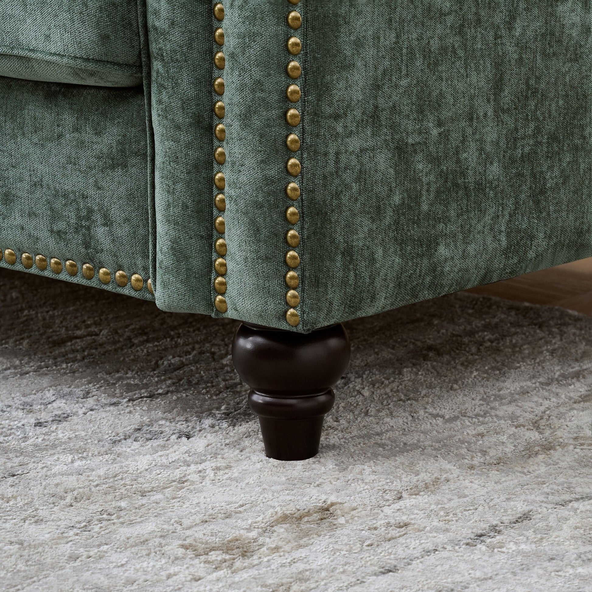3 And 2 Seater Sofa With Rolled Arms And Nailhead Trim Upholstered Couch With Legs - Beige