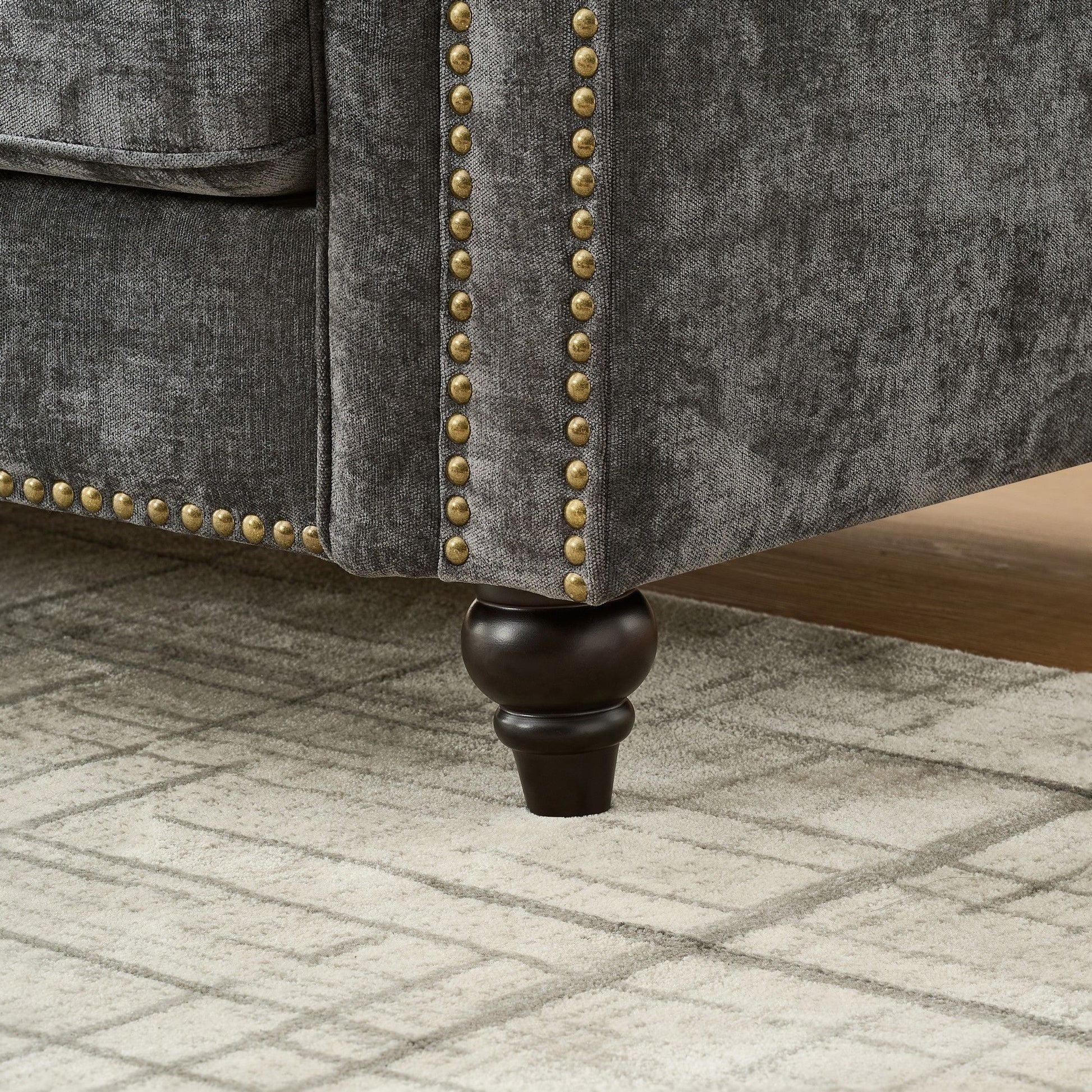 3 And 2 Seater Sofa With Rolled Arms, Tufted Upholstered Couch - Gray