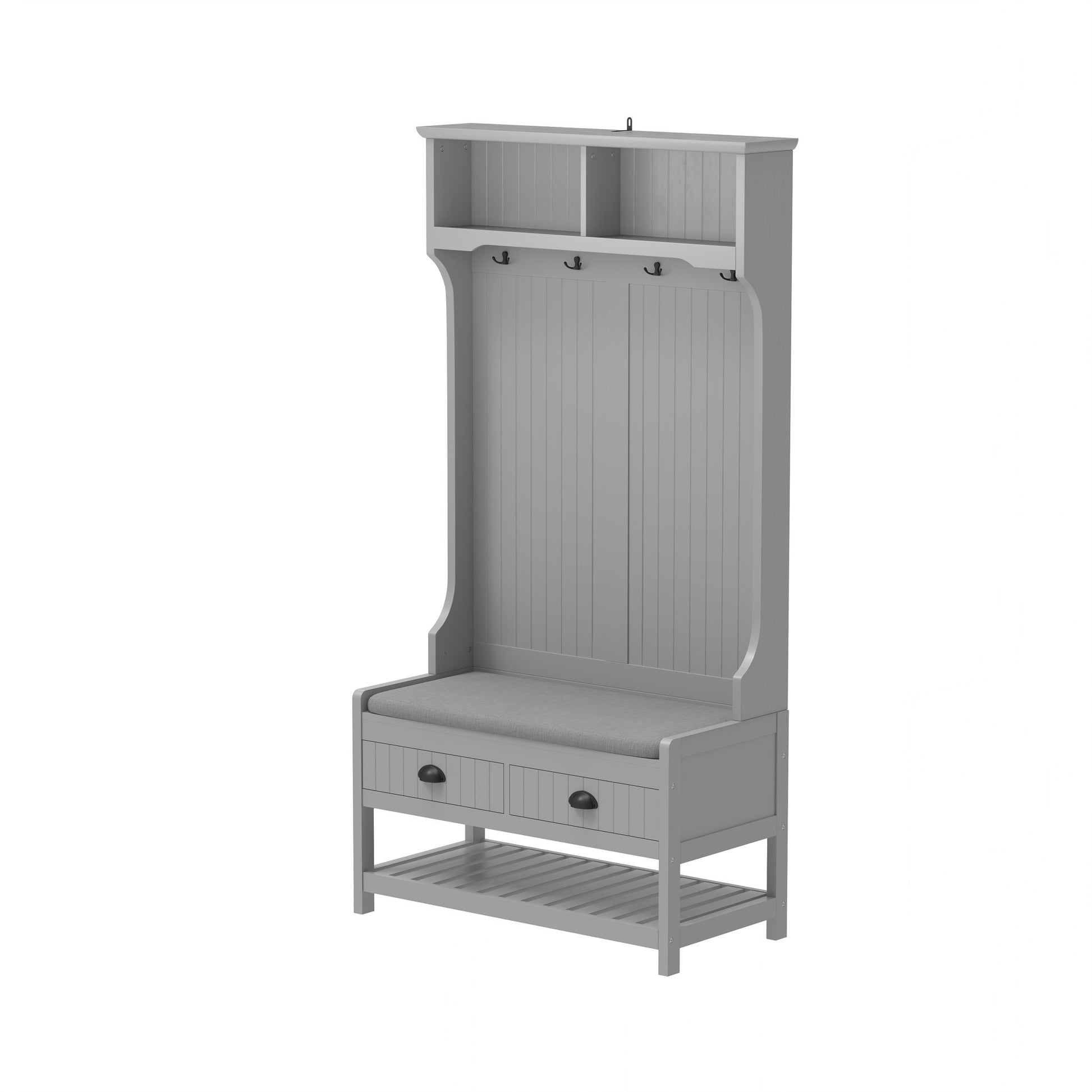 Modern 3 In 1 Hallway Hall Tree With Storage Drawers, Coat Rack, Shoe Rack Bench, And Cushion - Gray