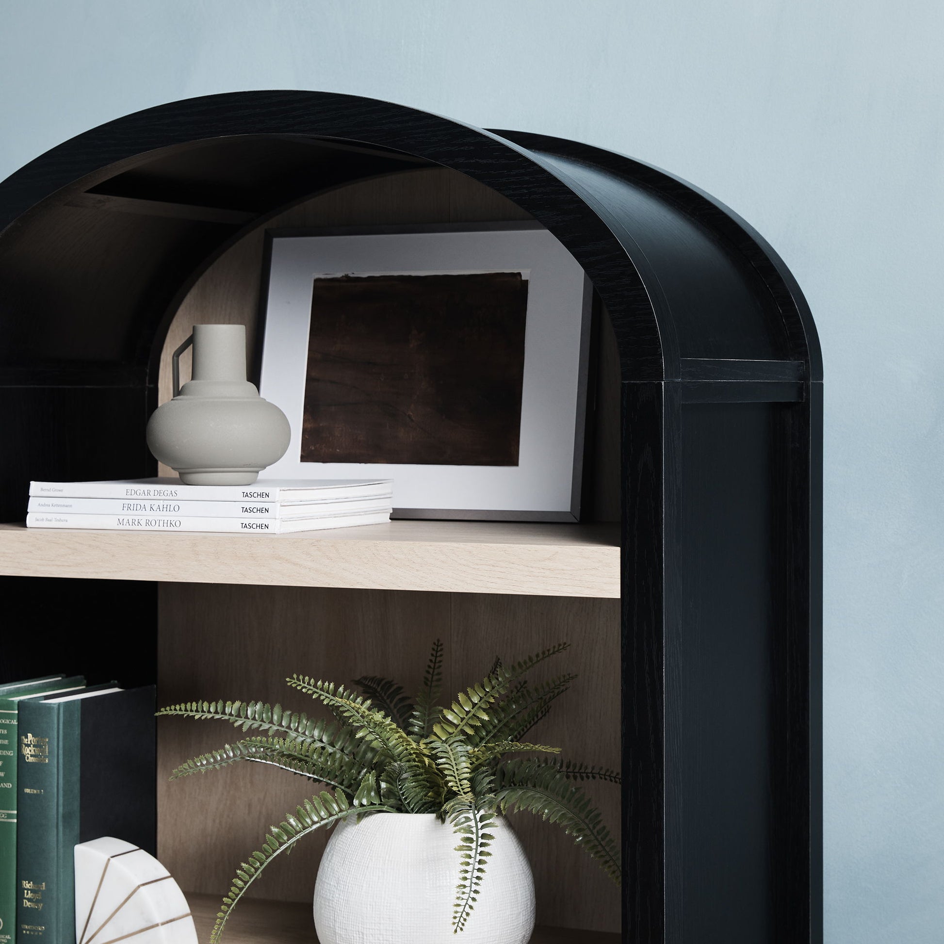 Modern 3 Shelf Open Arched Bookcase Cabinet - Black