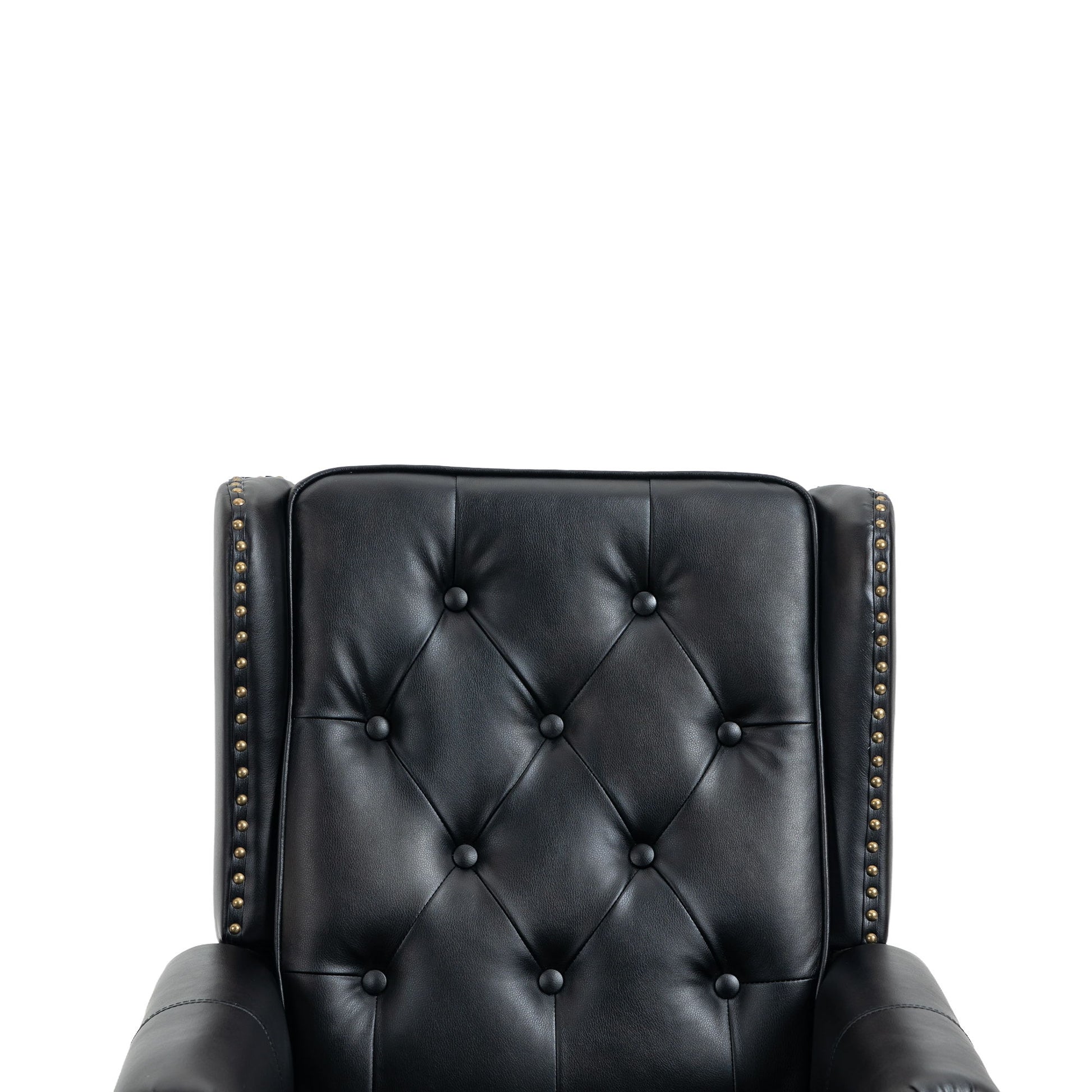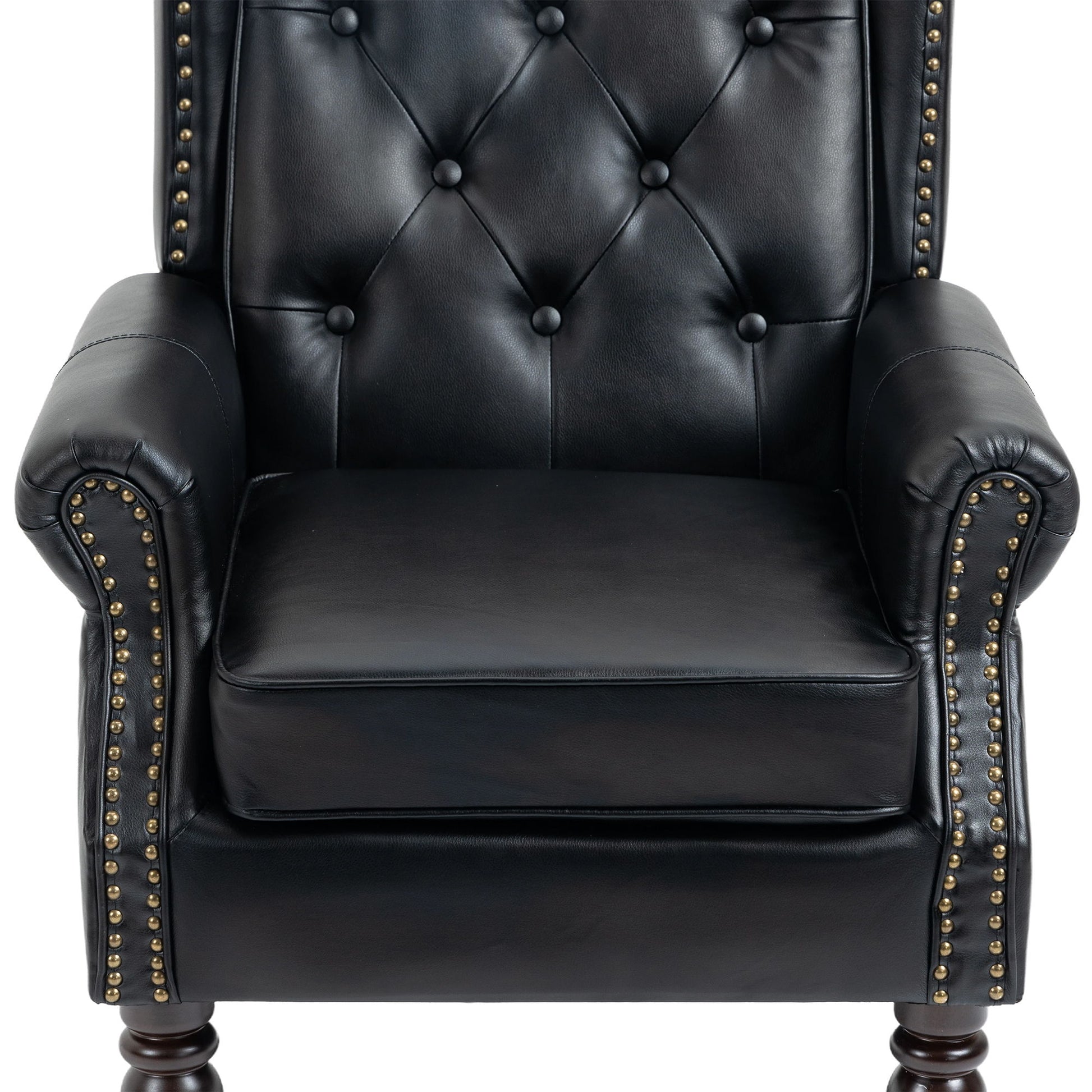 Modern Accent Armchair With Sturdy Wood Legs Leather For Living Room Or Bedroom - Black