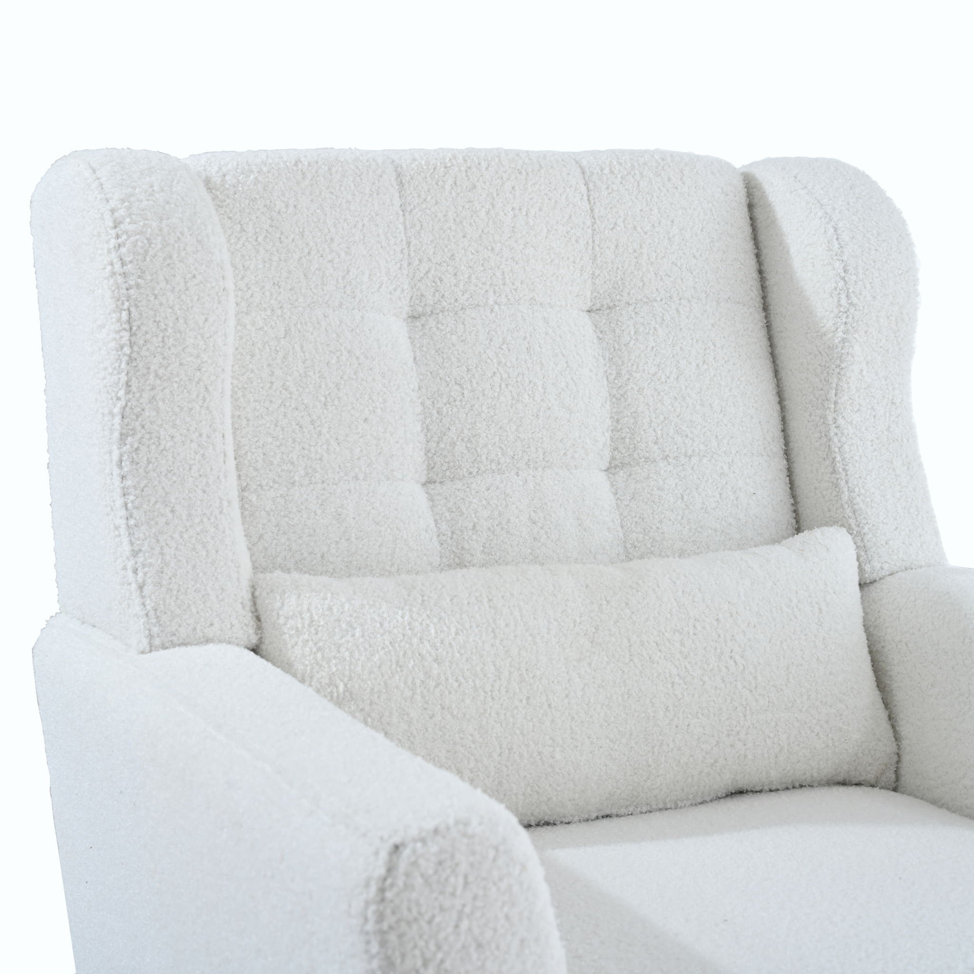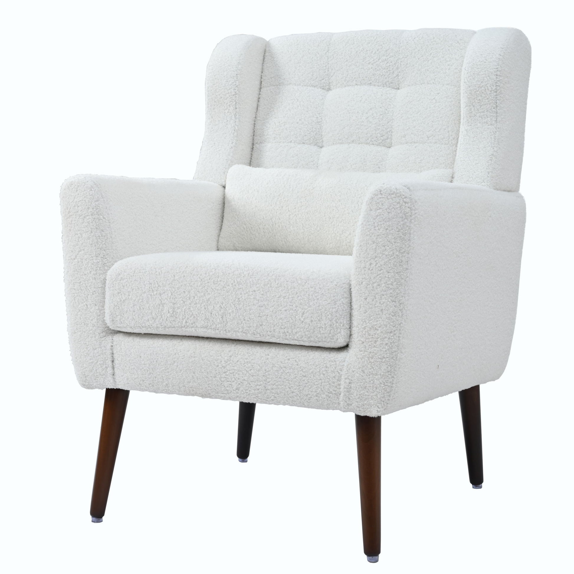 Modern Accent Chair, Teddy Fabric Living Room Chairs Comfy Reading Chair, Mid Century Accent Chair, Lounge Arm Chairs Armchair For Living Room Bedroom - White