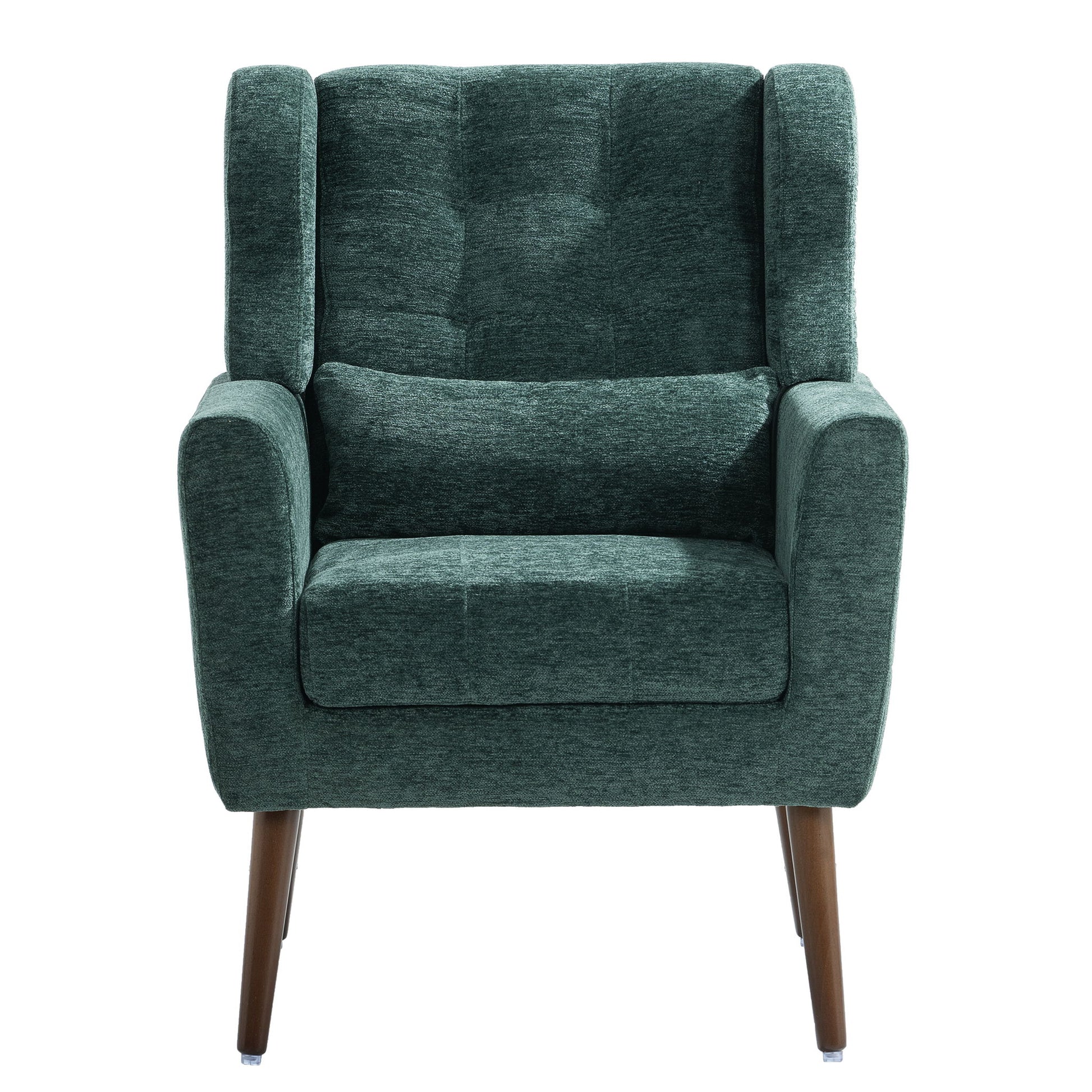 Modern Accent Chair, Chenille Arm Chairs For Living Room, Upholstered Mordern Armchair, Comfy Soft Padded Lounge Chair In Small Space, Bedroom, With Pillow, Solid Wood Leg - Blackish Green