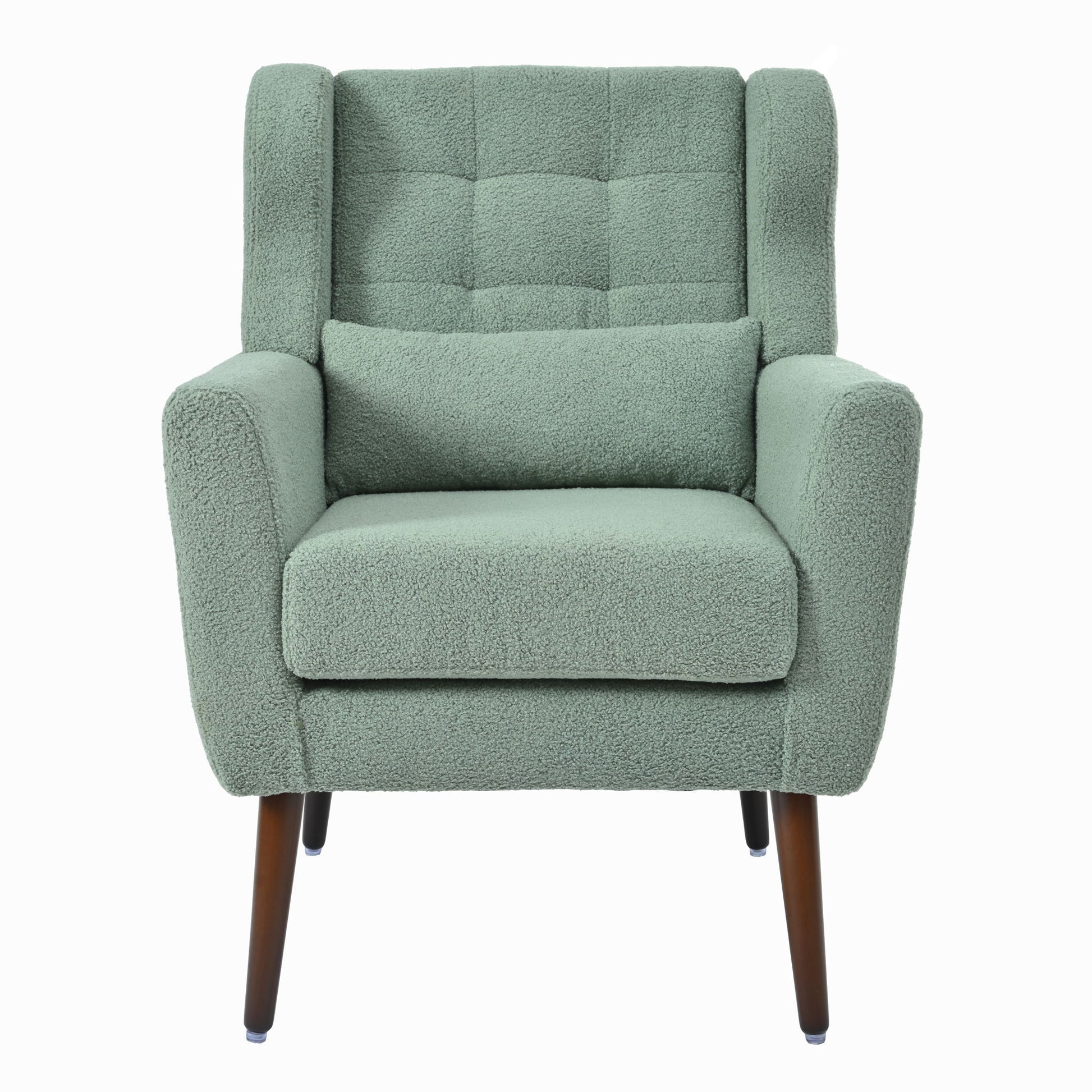 Modern Accent Chair, Teddy Fabric Living Room Chairs Comfy Reading Chair, Mid Century Accent Chair, Lounge Arm Chairs Armchair For Living Room Bedroom - Light Green