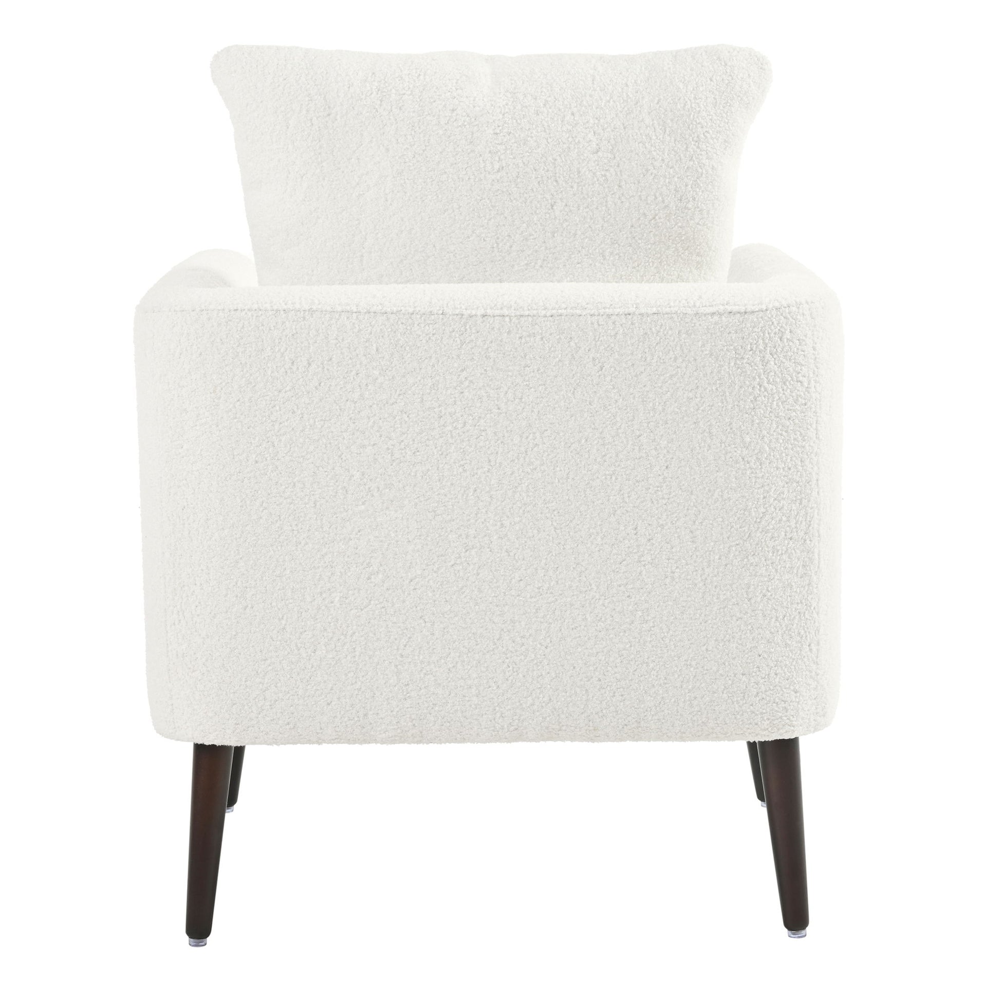 Modern Teddy Fabric Accent Chair - Mid - Century Upholstered Armchair With Pillow And Wood Legs For Living Room, Or Reception Room - White