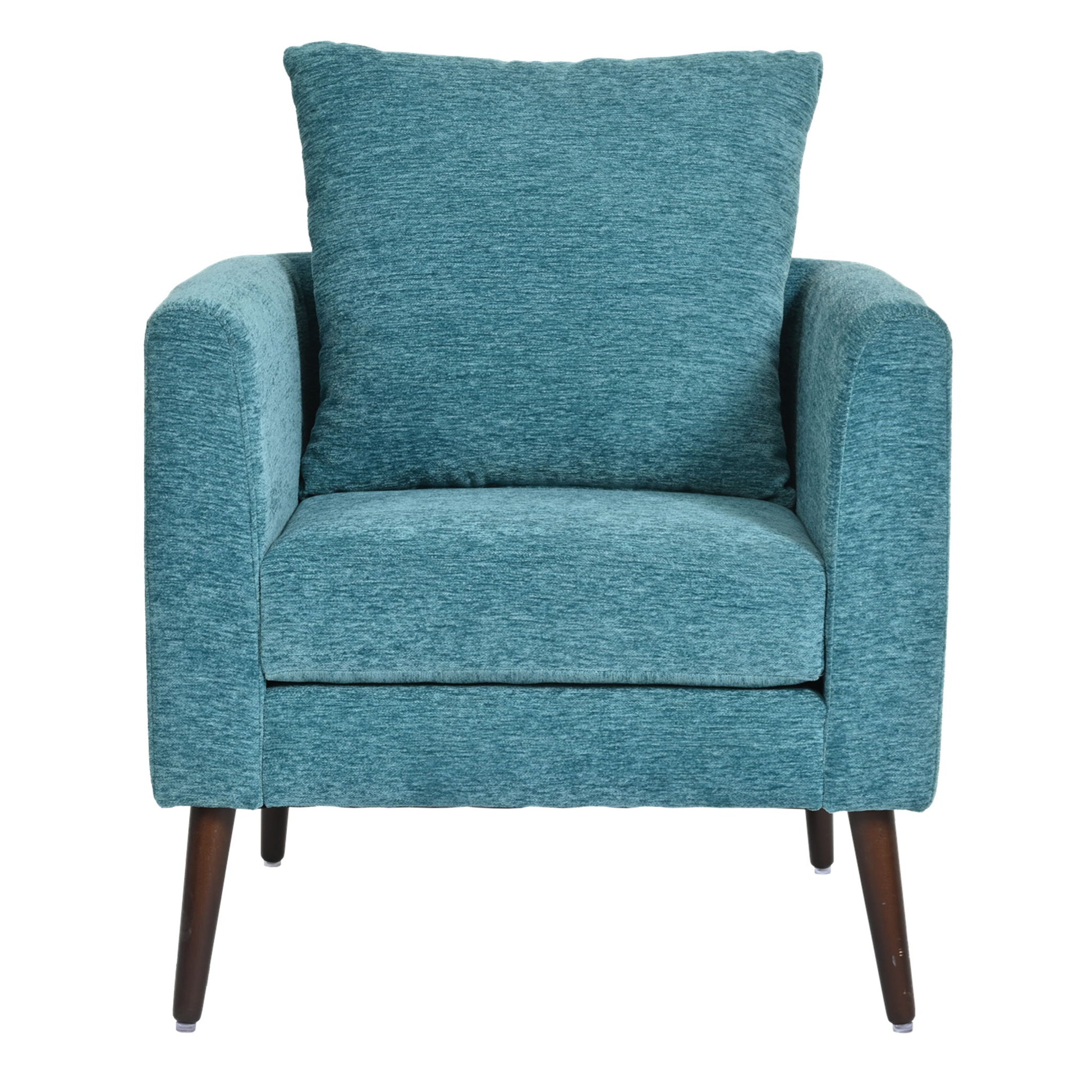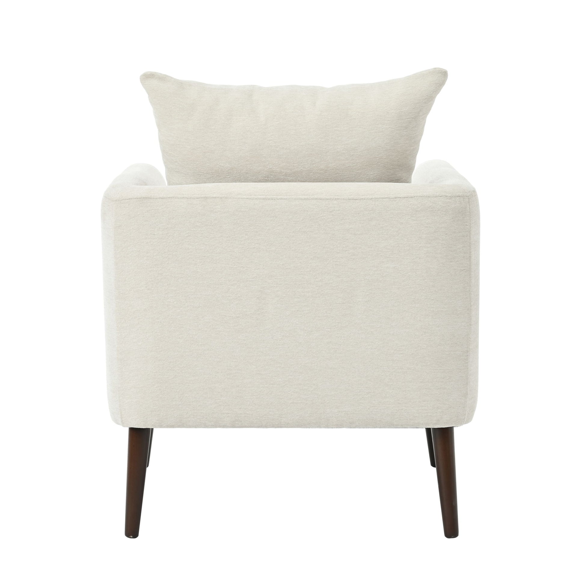 Modern Chenille Accent Chair, Upholstered Armchair For Living Room, Mid Century Fabric Lounge Chair With Pillow, Comfortable Reading Chair With Wood Legs For Living Room, Reception Room - Beige