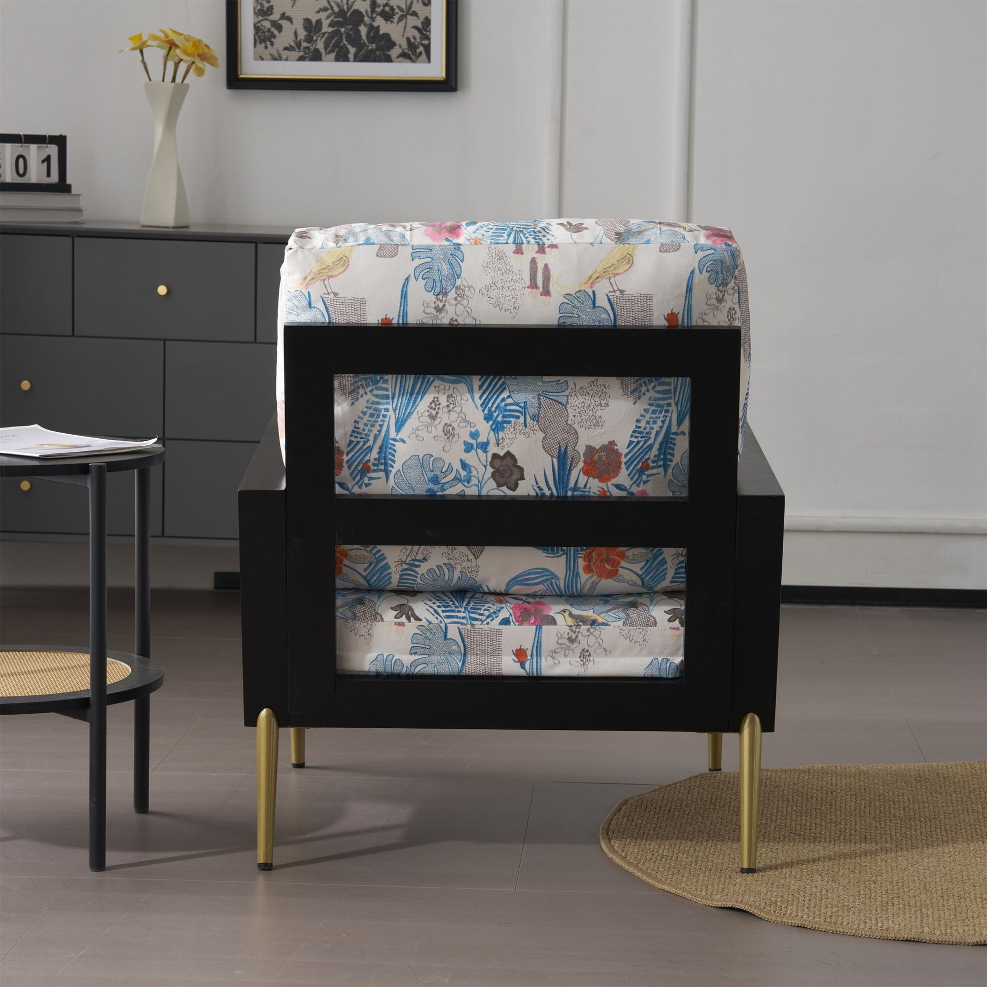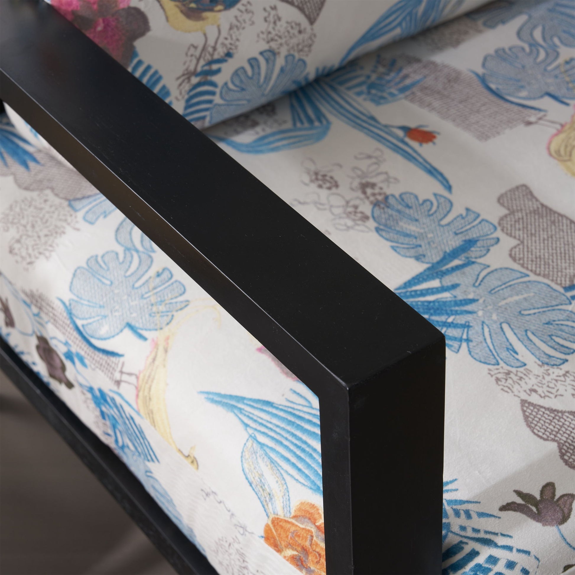 Floral Armchair With Wood Frame - Antique Blue / Black / Flower
