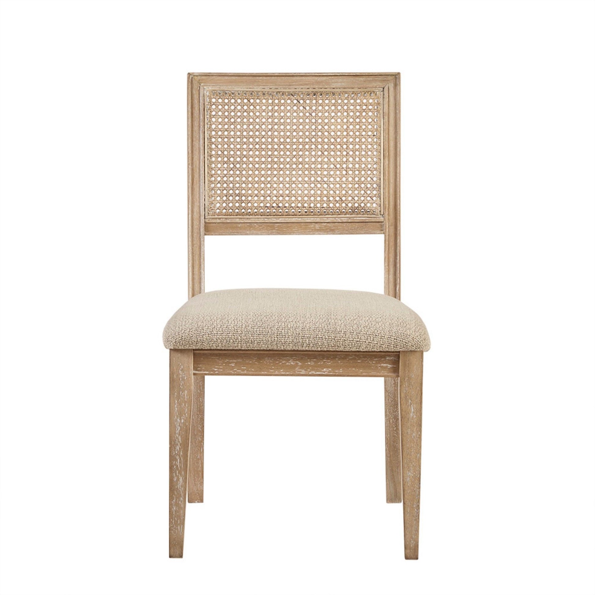 Armless Dining Chair With Cane Back And Upholstered Seat (Set of 2) - Light Brown