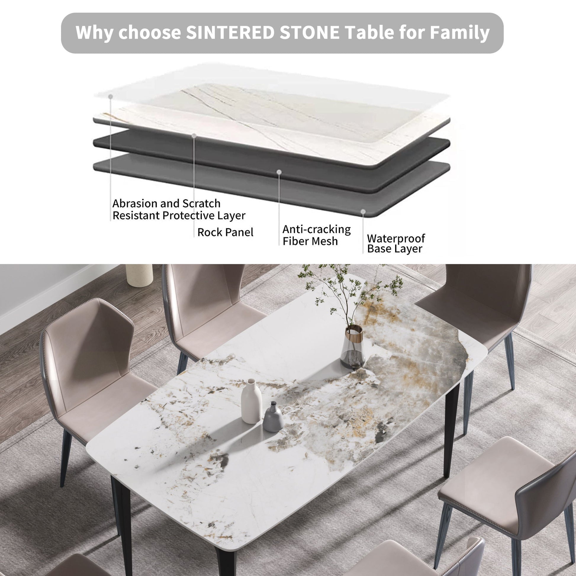 - Durable Surface: 12mm thick sintered stone tabletop resists burns, stains, and scratches.