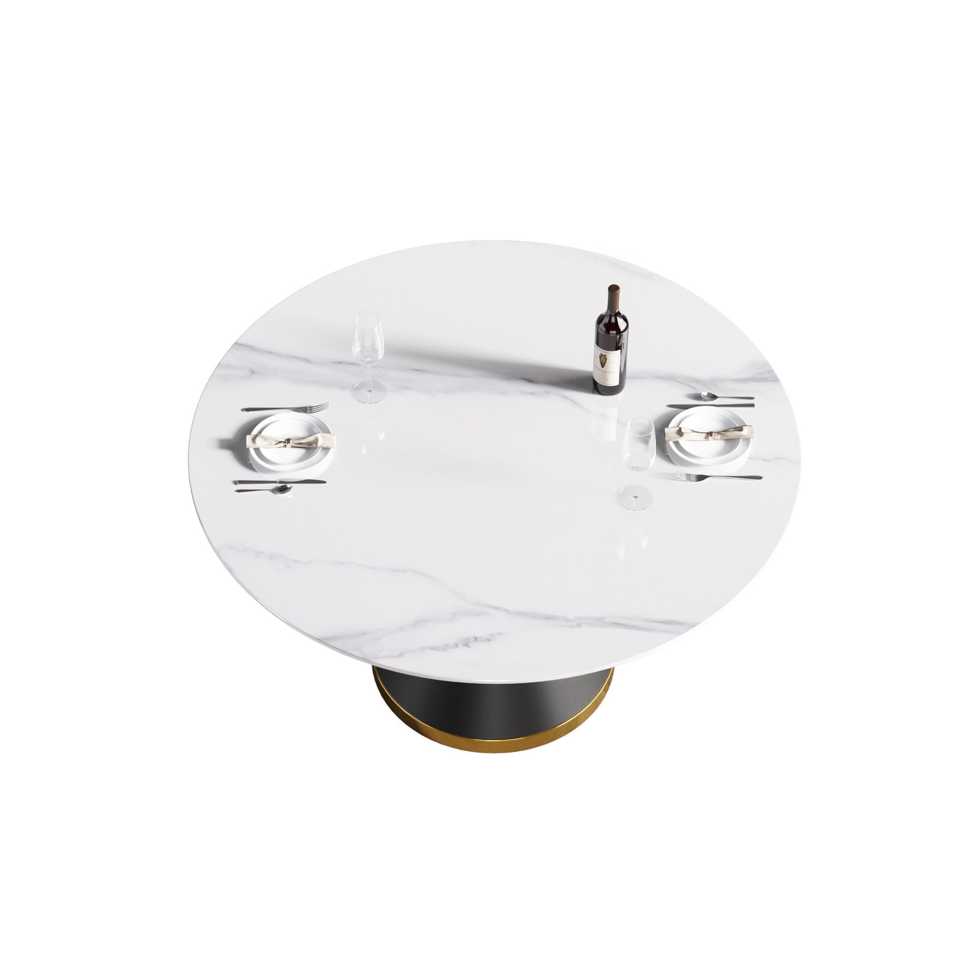 53.15" Modern Artificial Stone Round Carbon Steel Base Dining Table, Can Accommodate 6 People -White / Black