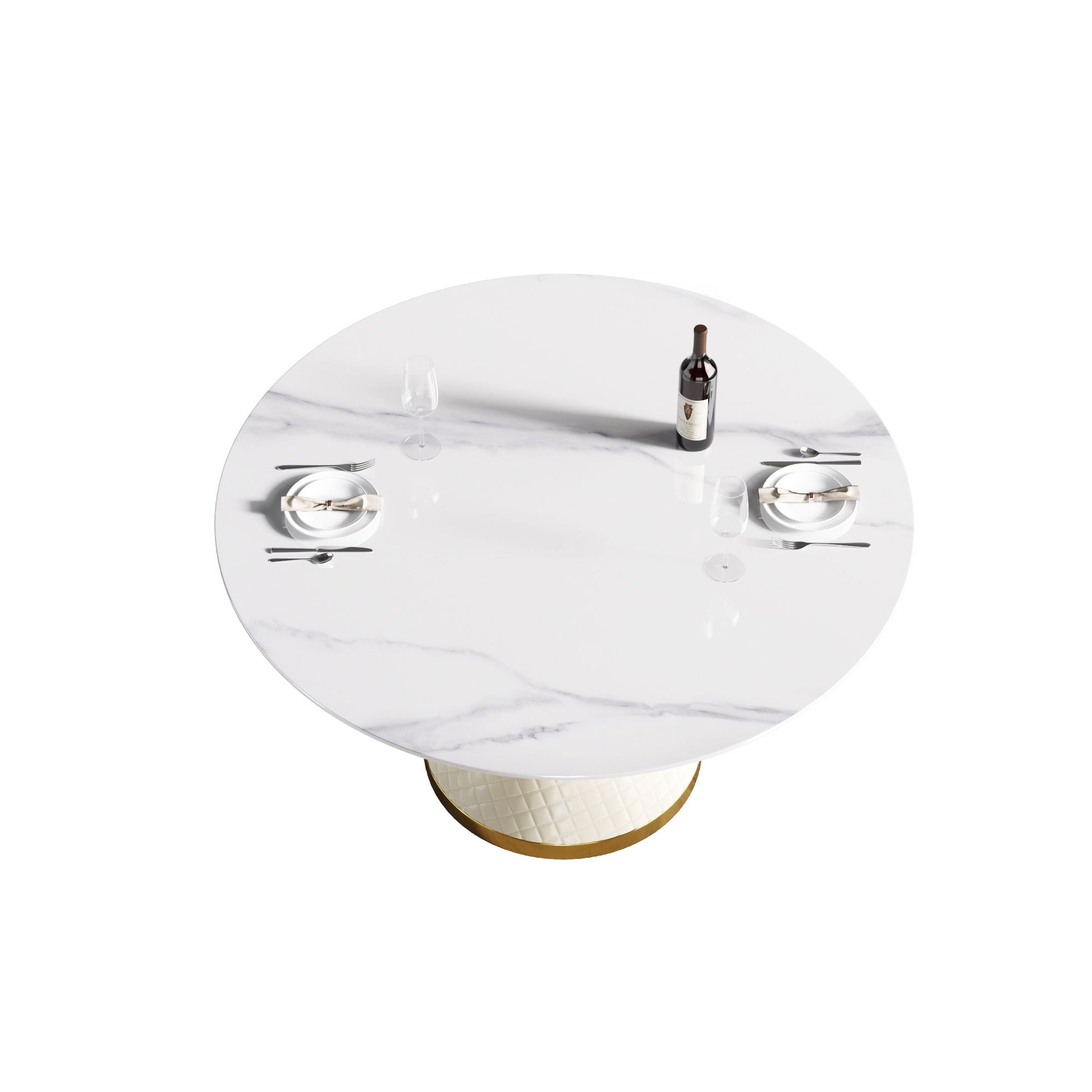 53.15" Modern Artificial Stone Round Carbon Steel Base Dining Table, Can Accommodate 6 People - White
