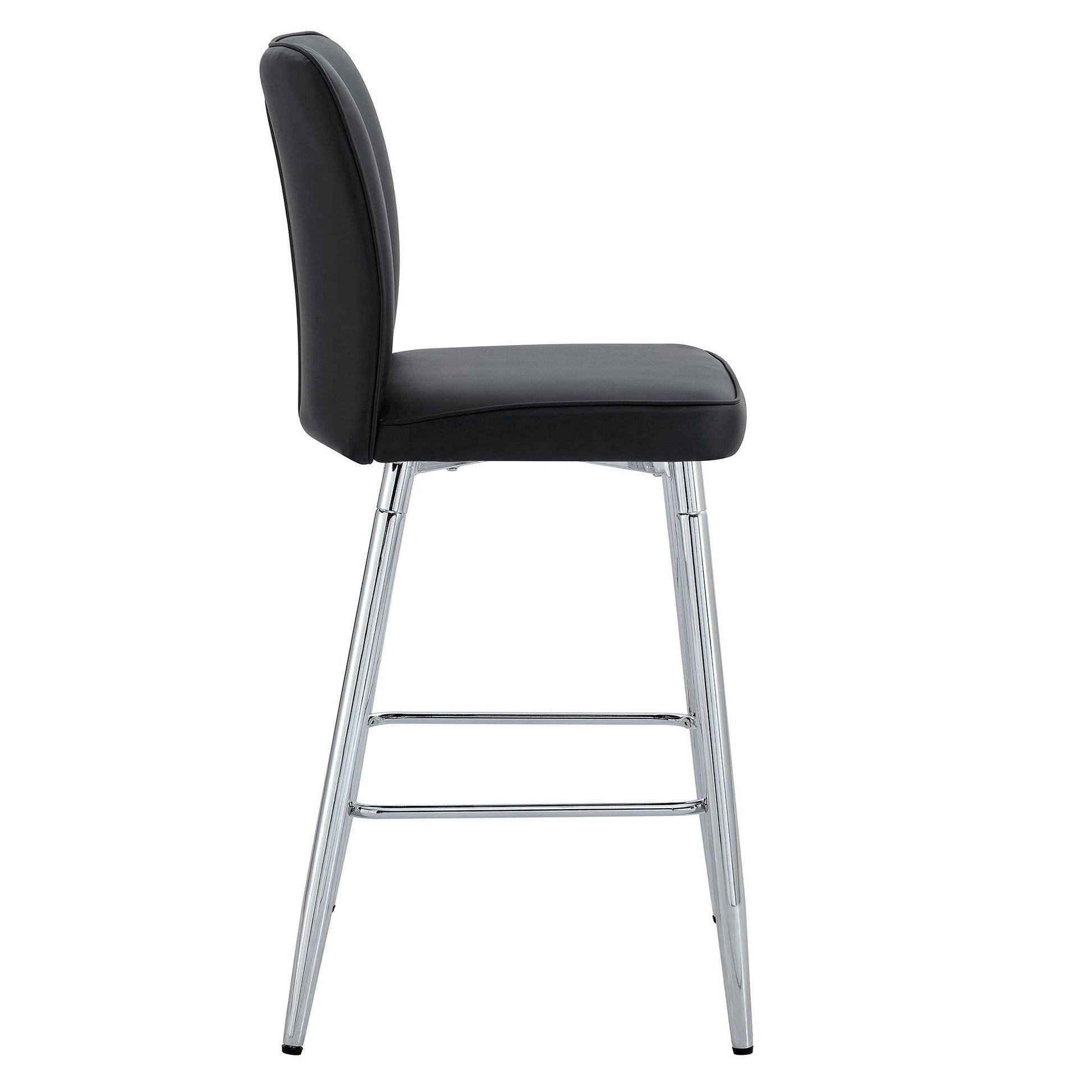 Modern Bar Chair Set Streamlined Backrest Metal Legs 2 Pieces - Black / Silver