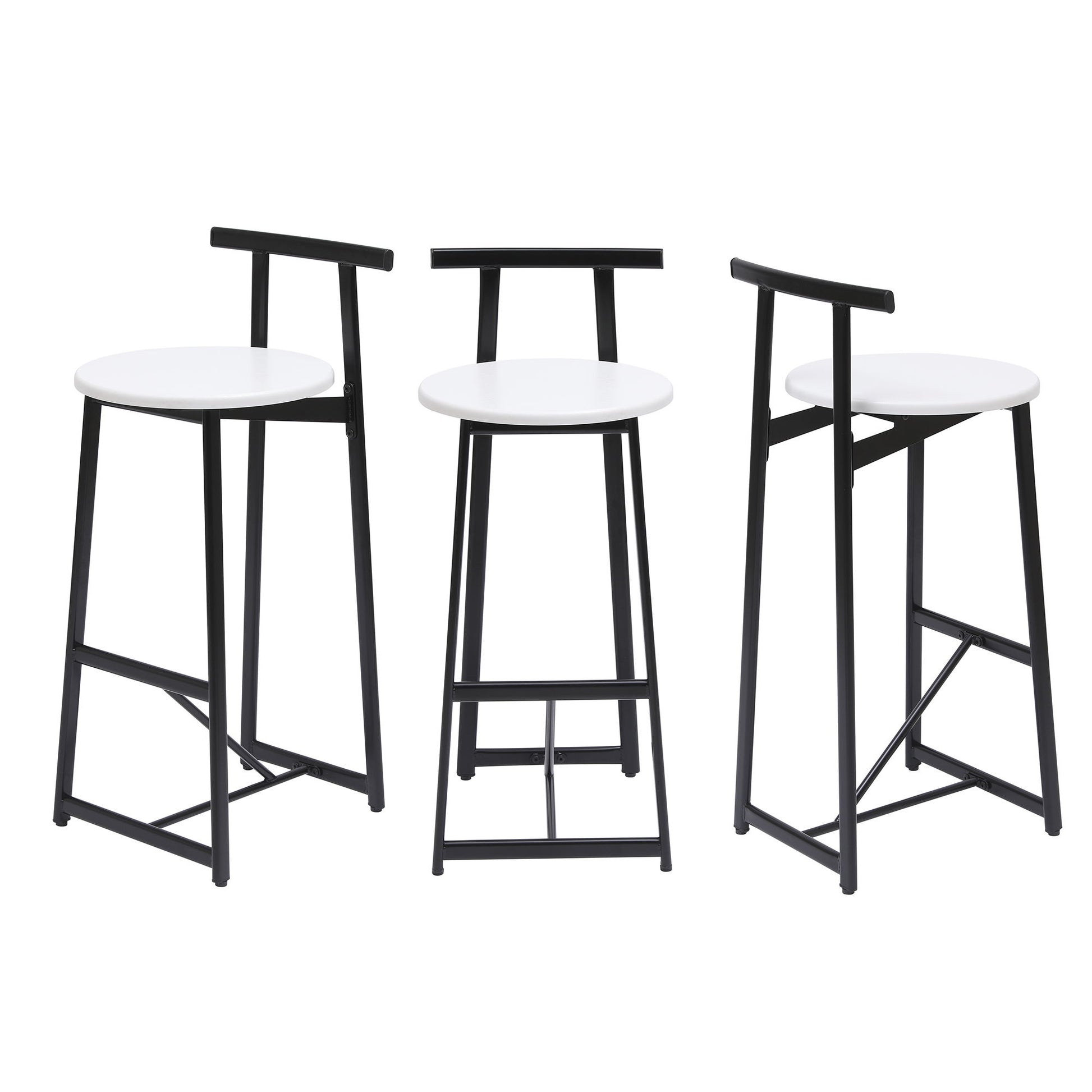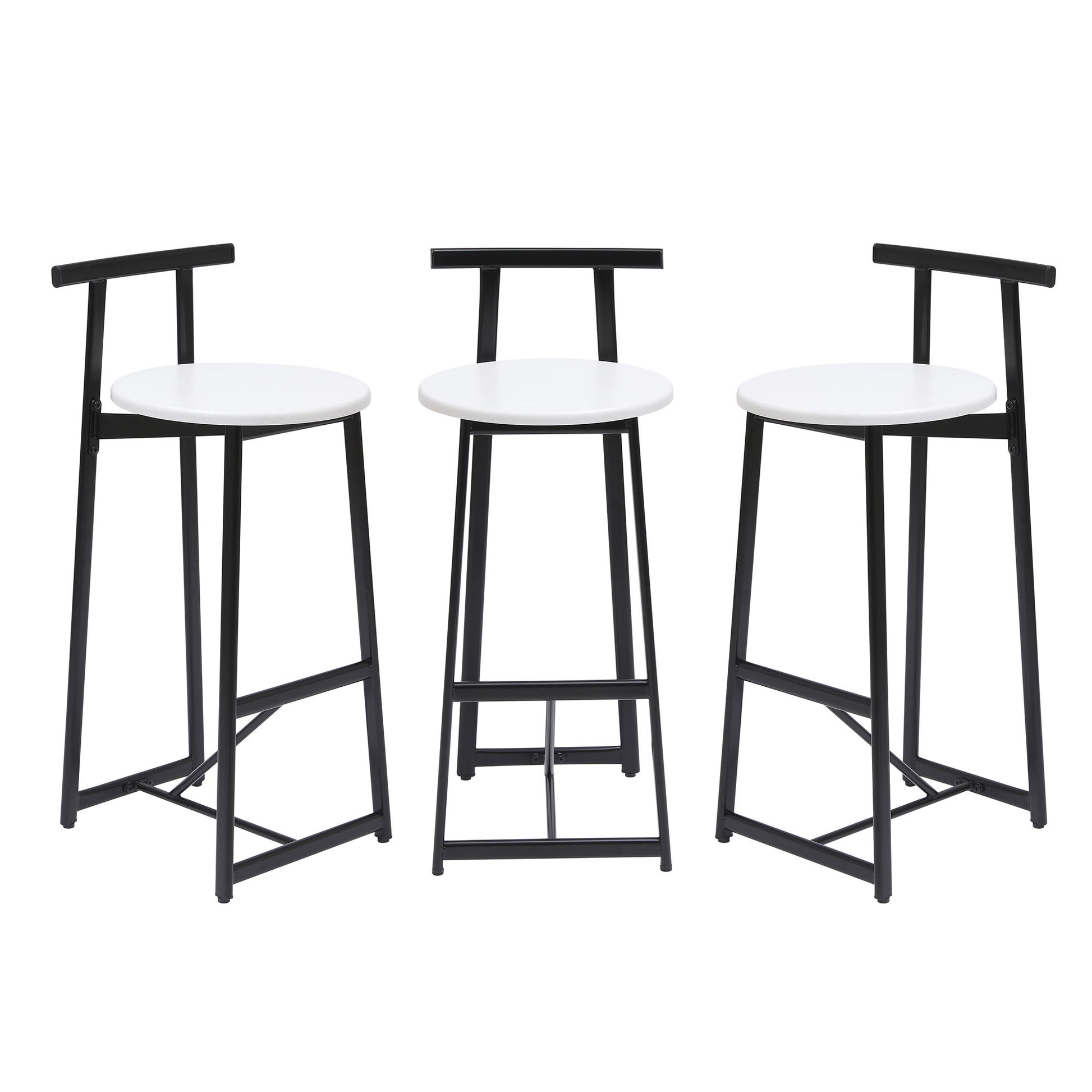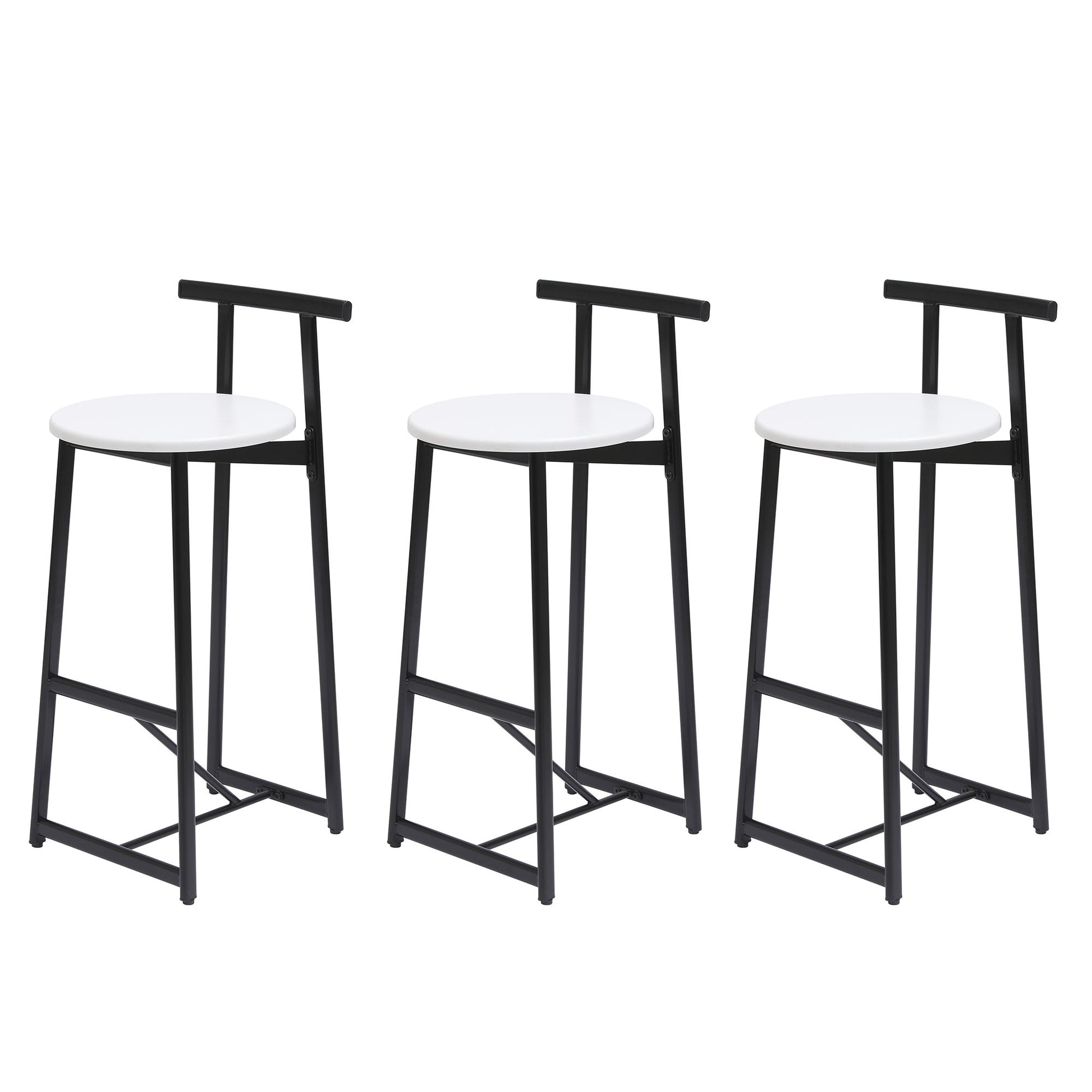 Modern Bar Stools With Backrest For Kitchen Island Or Pub Room, Metal Frame (Set of 3) - Black / White
