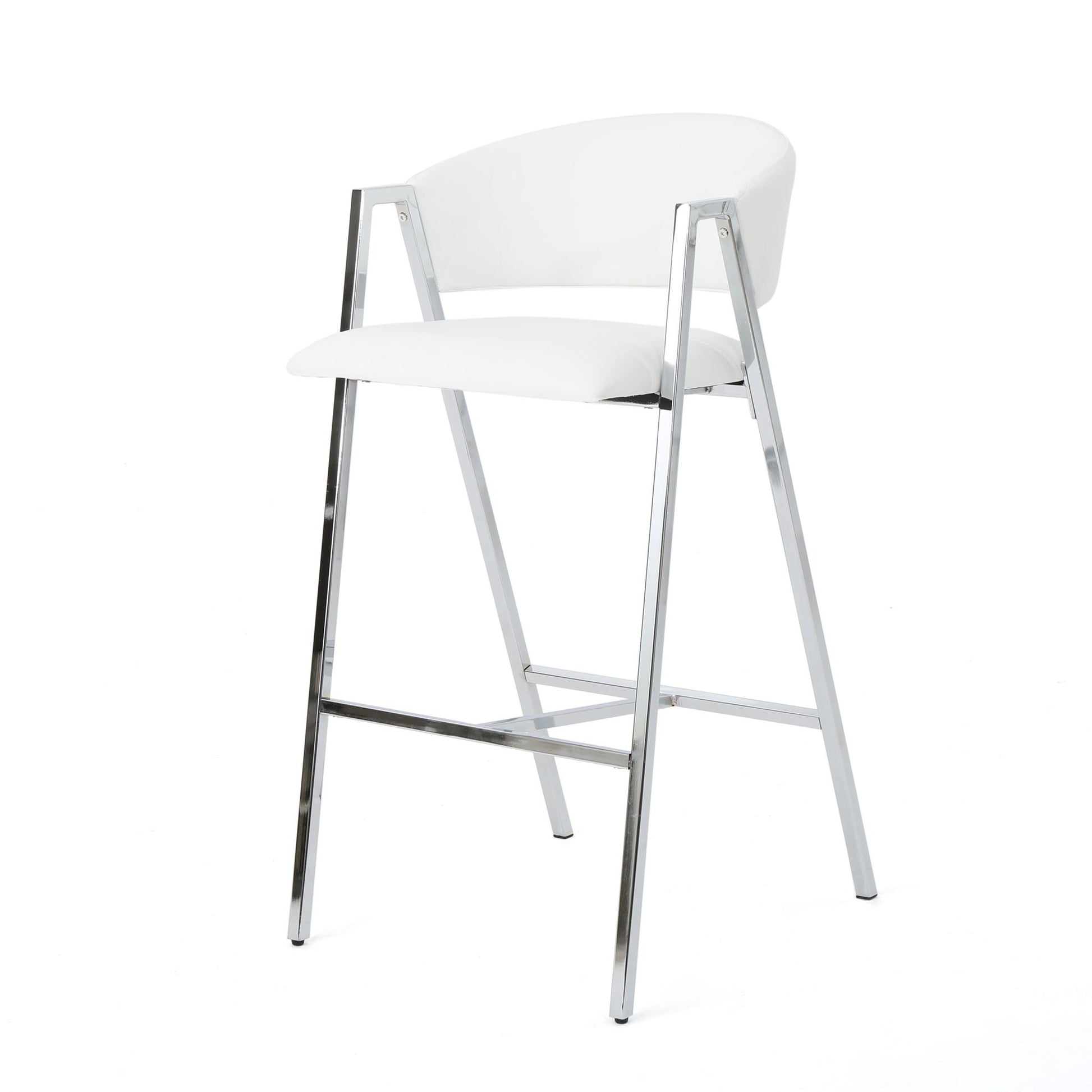 Modern Bar Stools With Low Back And Arms And Durable Metal Frame (Set of 2) - Ivory