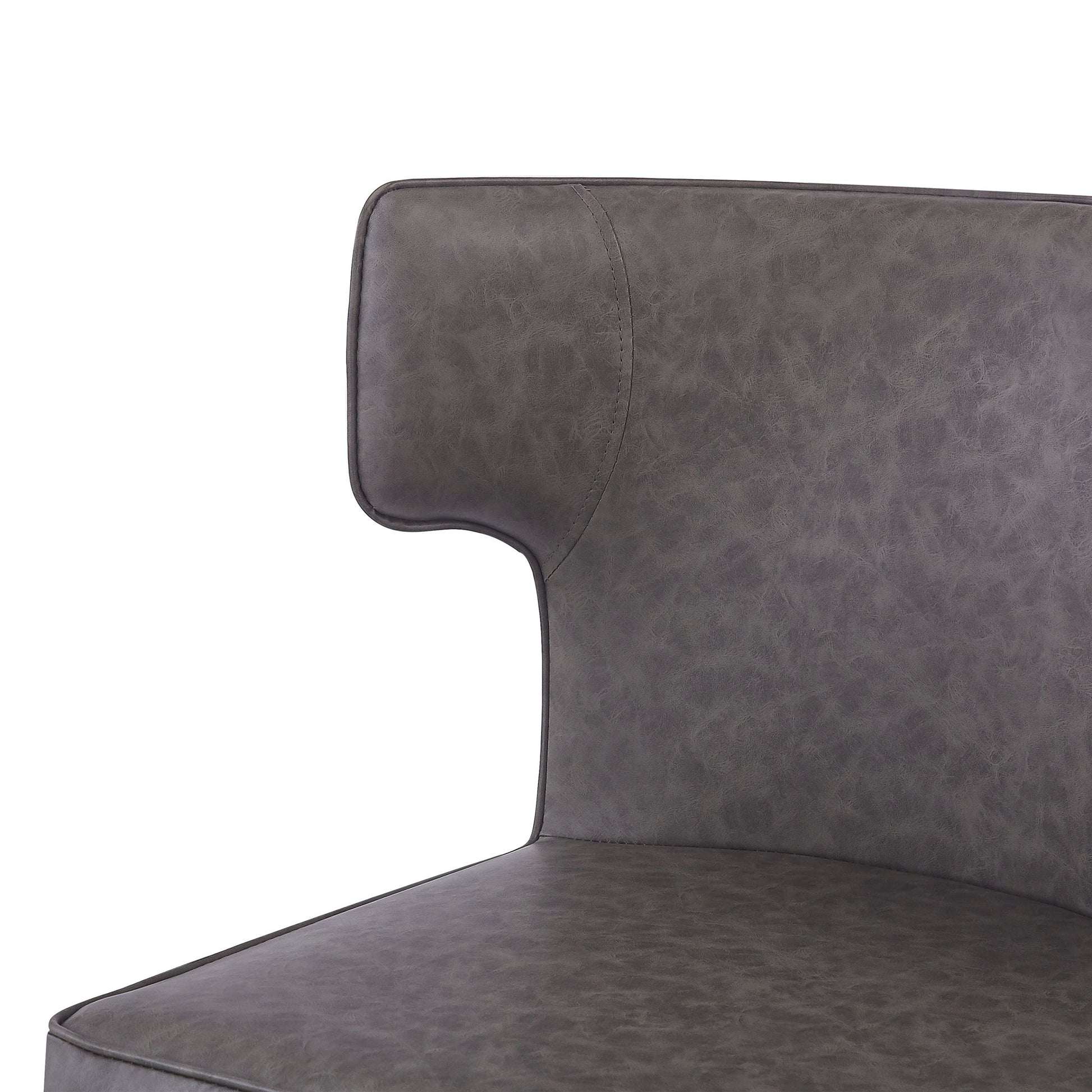 Modern Counter Height Bar Stools (Set of 2) With Leather Upholstery, Metal Frame - Gray