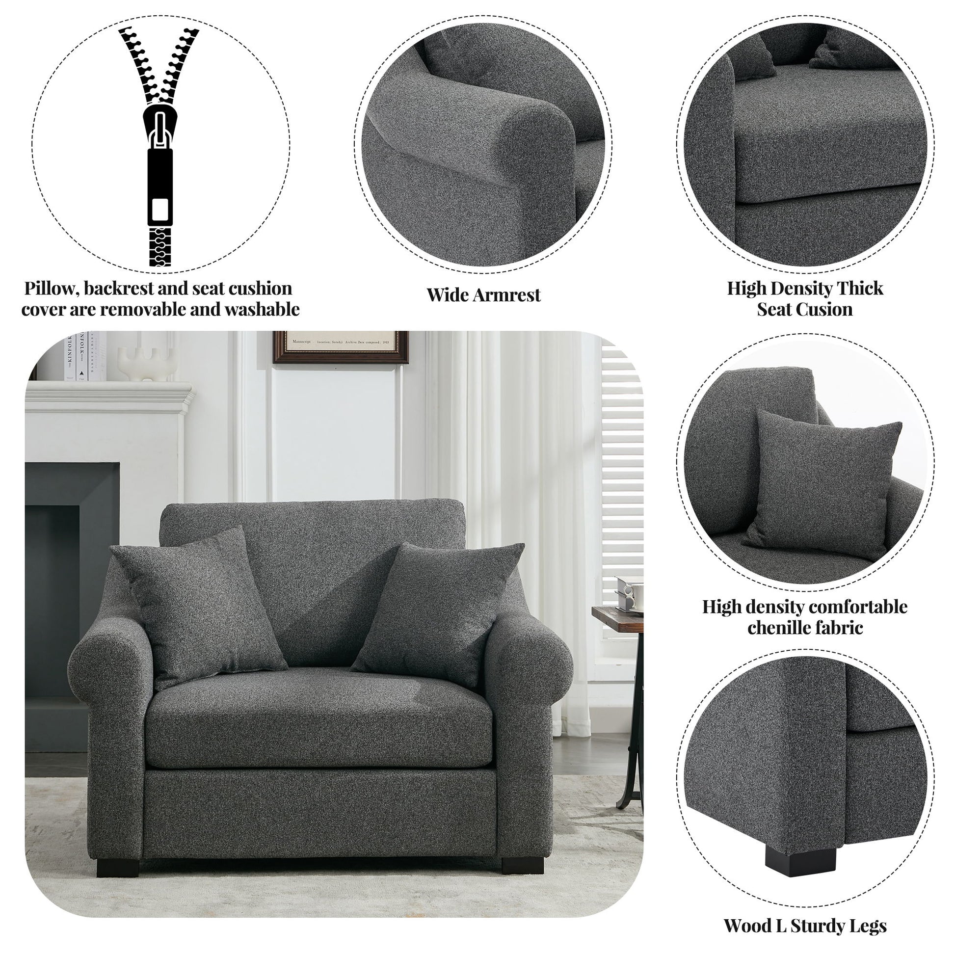 Modern Chenille Oversized Armchair, Chair And A Half, Single Sofa For Bedroom, Living Room, Wide - Gray