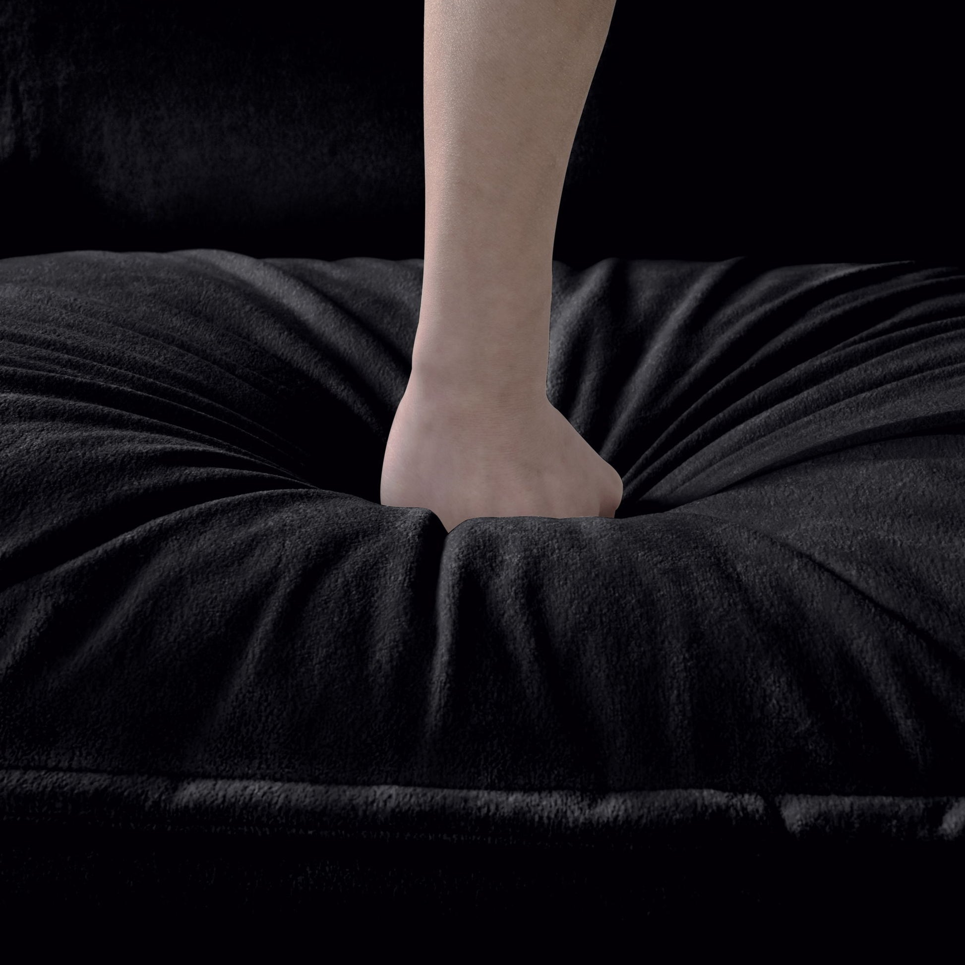Modern Chenille Oversized Deep Seat Sectional Sofa, Large 3 Seater Modular With Pillows - Black