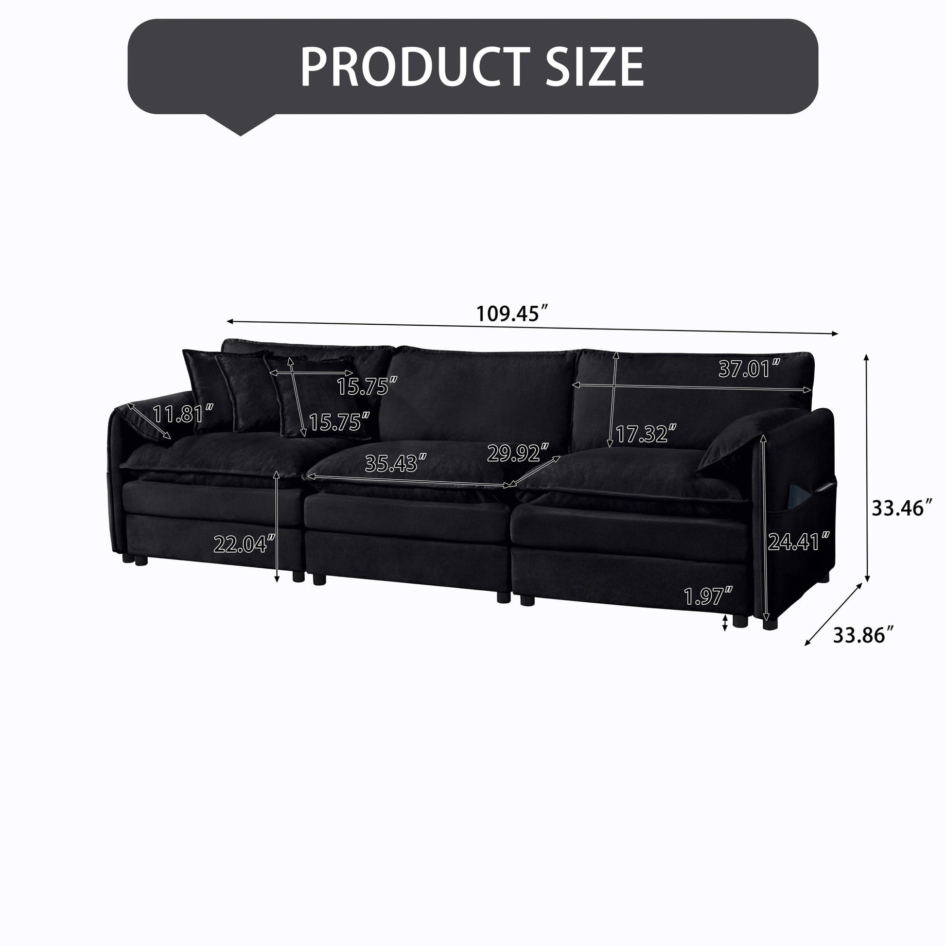 109.45"W x 33.86"D x 33.46"H - 133.32 lb