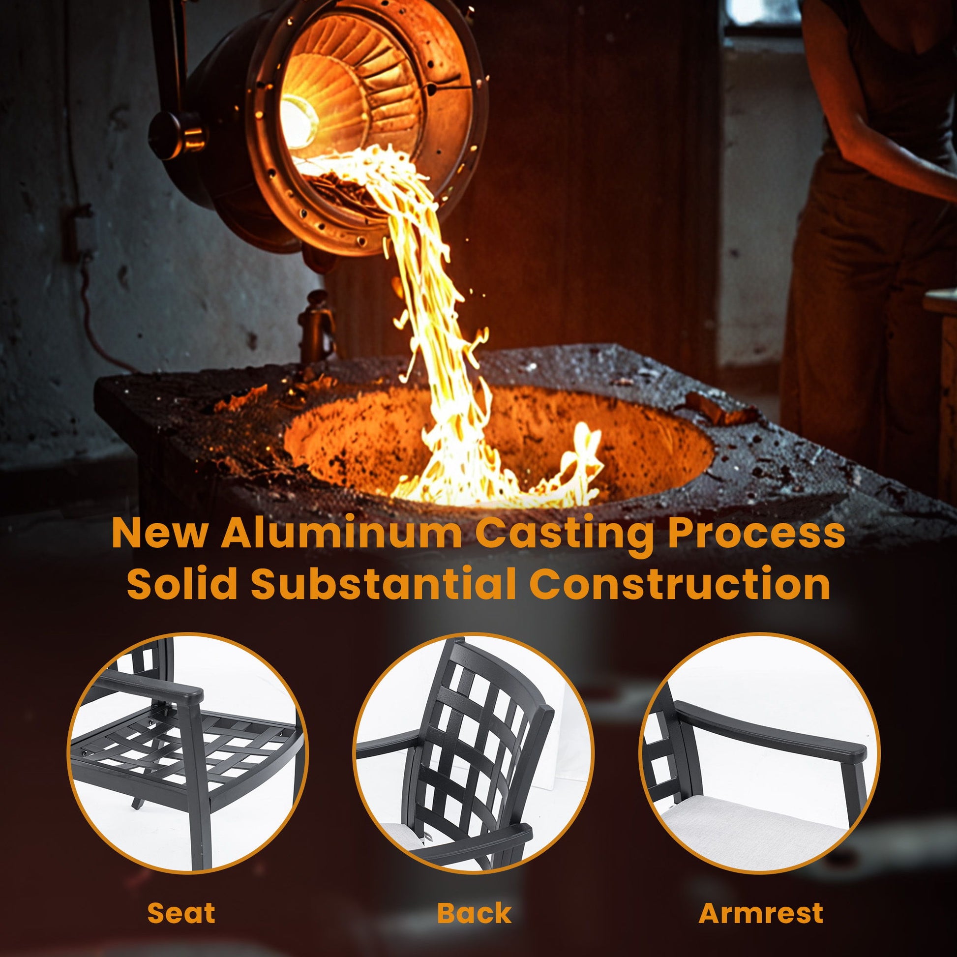 - Durable Construction: Crafted with cast aluminum technology, this dining chair features a seamless design with integrated backrest, seat, and armrests for superior strength and long-lasting performance.
