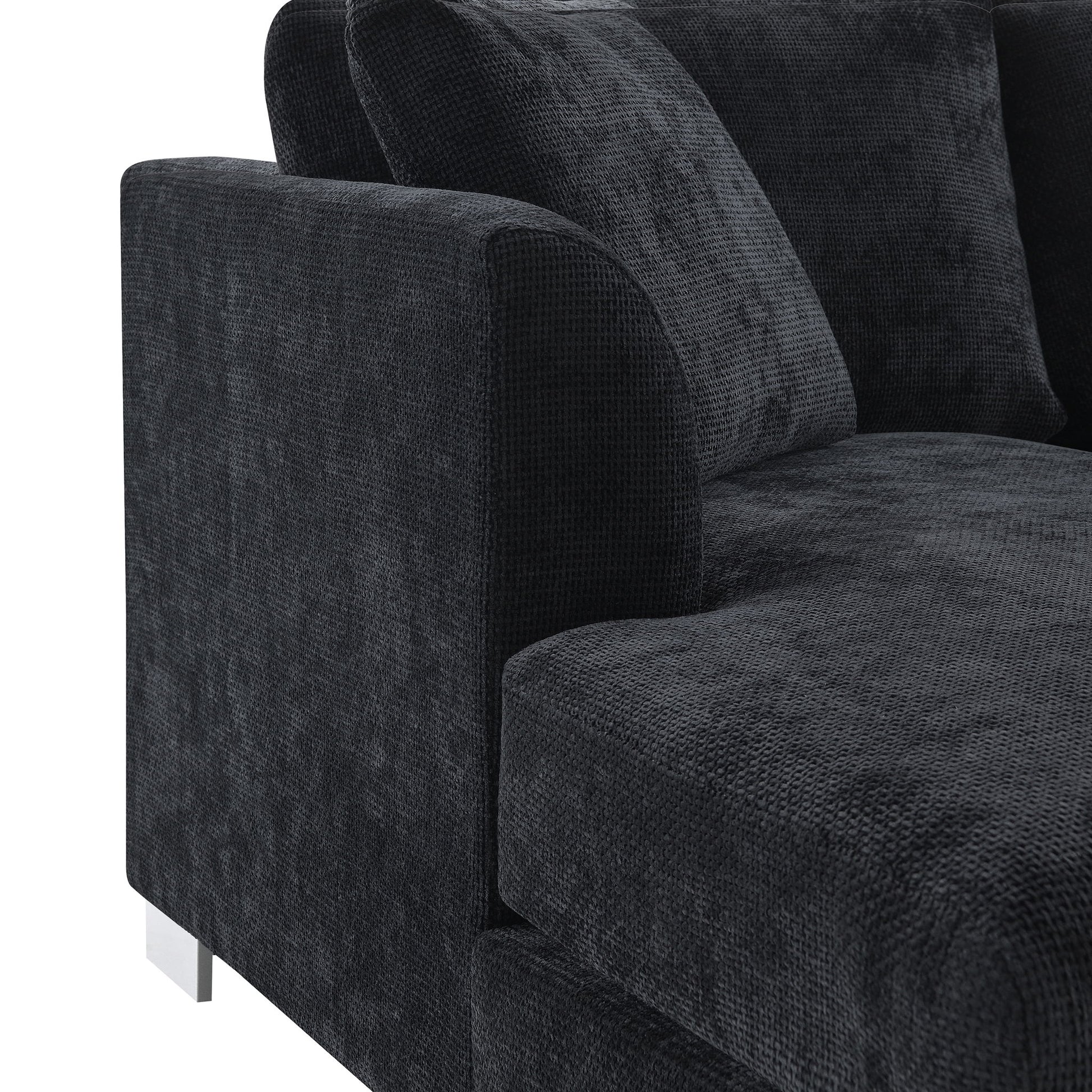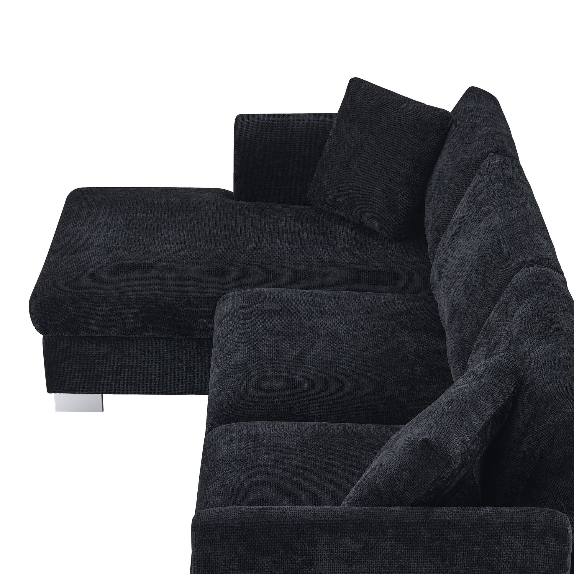 Modern Cloud Sectional Sofa L Shaped Luxury Couch Set With 2 Free Pillows 4 Seat With Oversized Chaise - Black