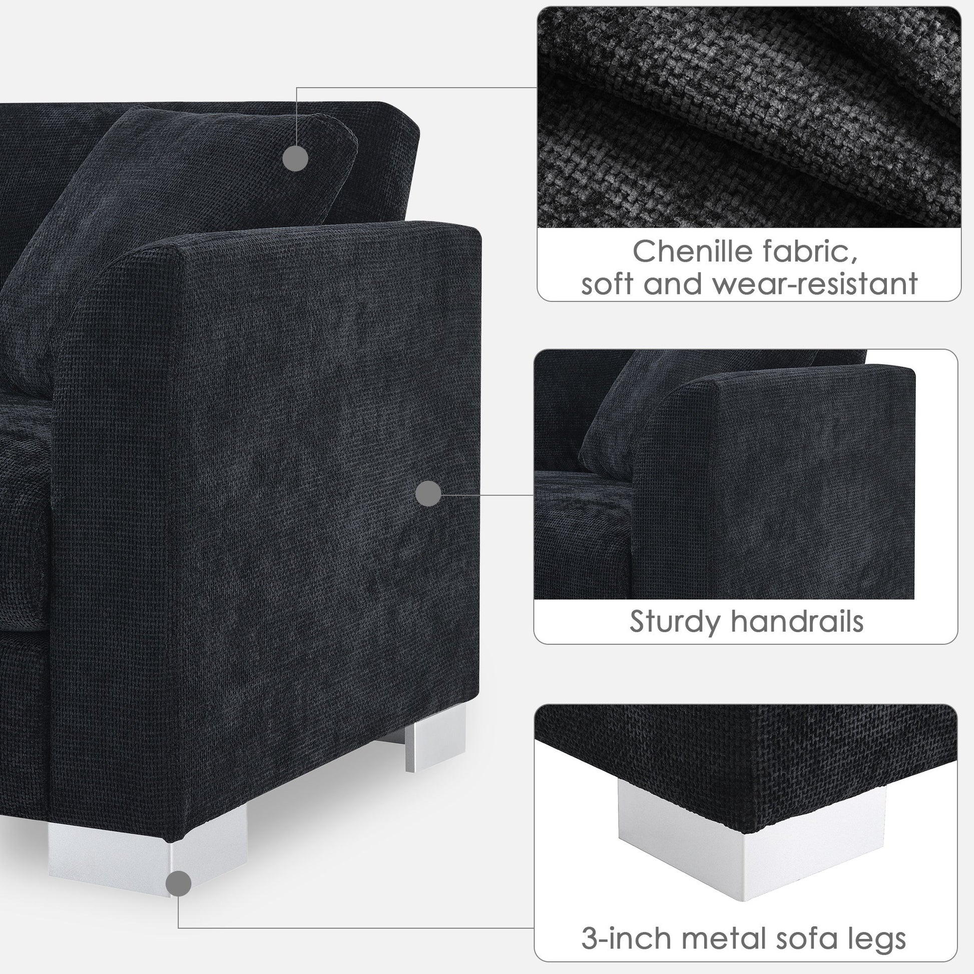 - Comfortable Materials: Made from high-quality chenille fabric, the sofa includes a comfortable back and strong support cushion. Pocket spring filled cushions provide even support across the seating area, enhancing overall comfort.