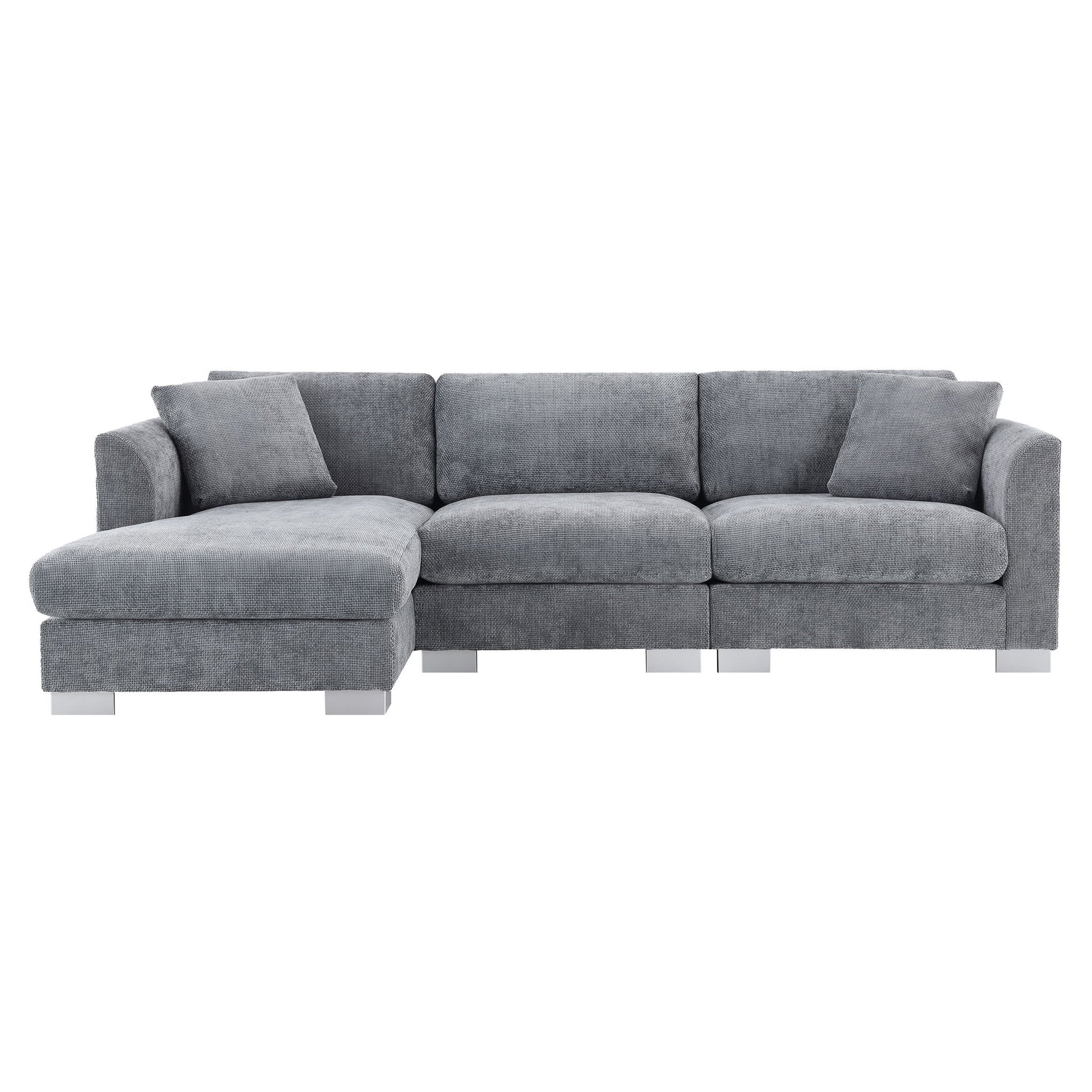 Modern Cloud Sectional Sofa L Shaped Luxury Couch Set With 2 Free Pillows 4 Seat With Oversized Chaise - Minsk Gray