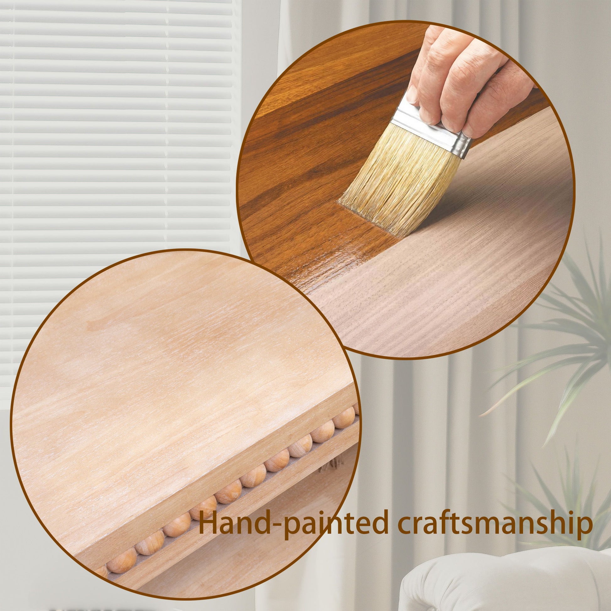 Modern Wood Coffee Table With Beaded Trim, Light, Farmhouse & Coastal Living Room Furniture - Natural
