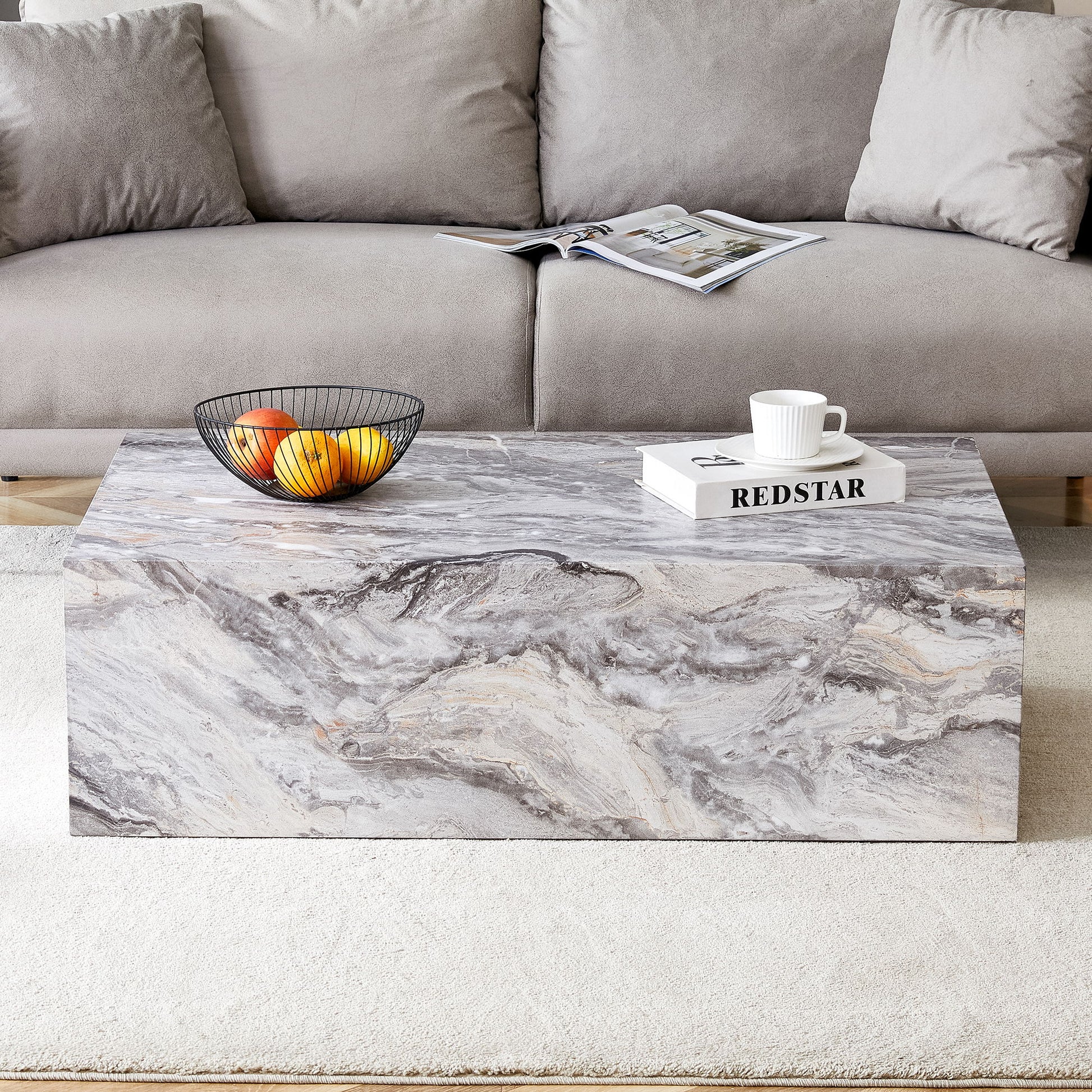 Luxurious Stone Pattern Coffee Table With Fashion Texture Design - Gray
