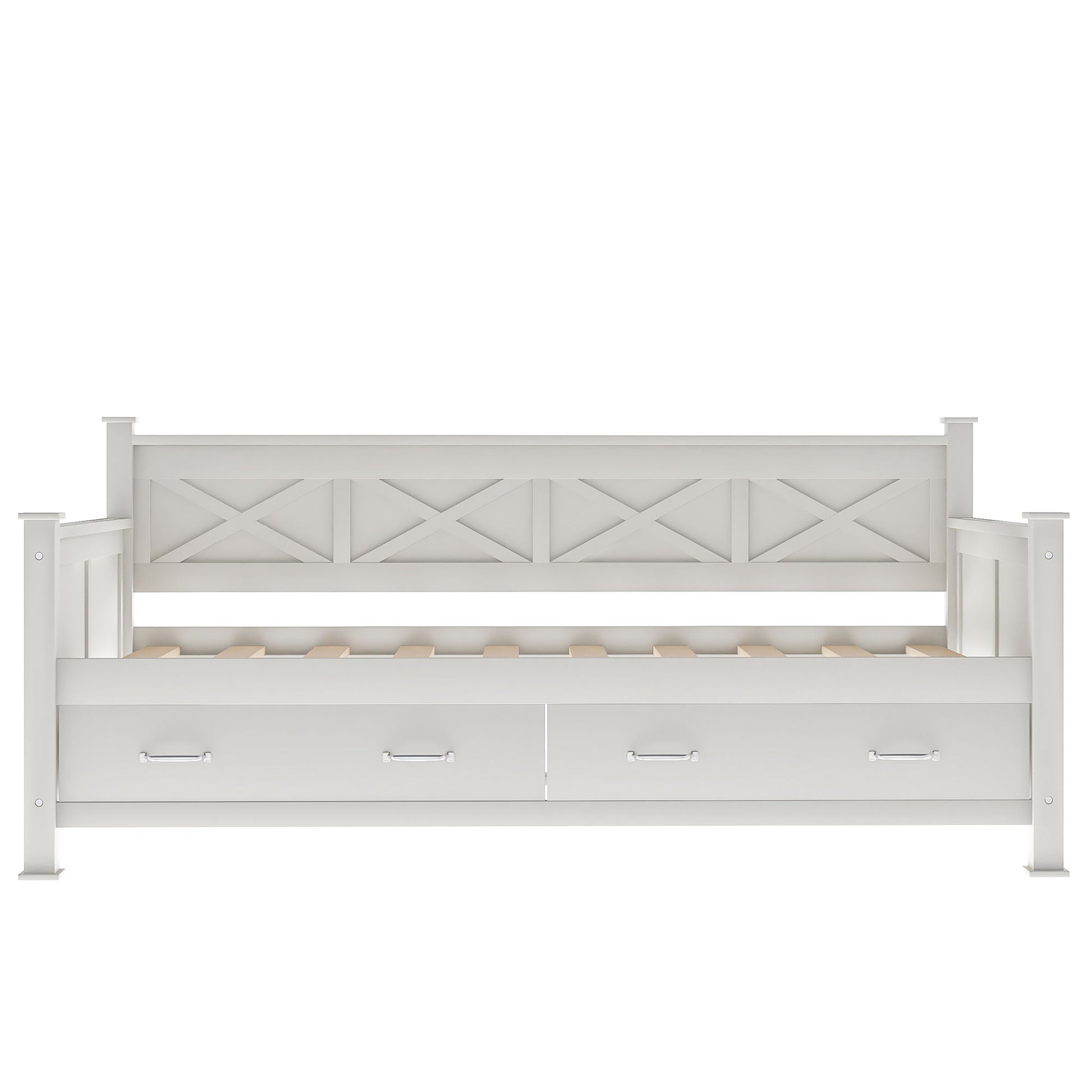 Twin Daybed With 2 Large Drawers, X Shaped Frame - Cream White