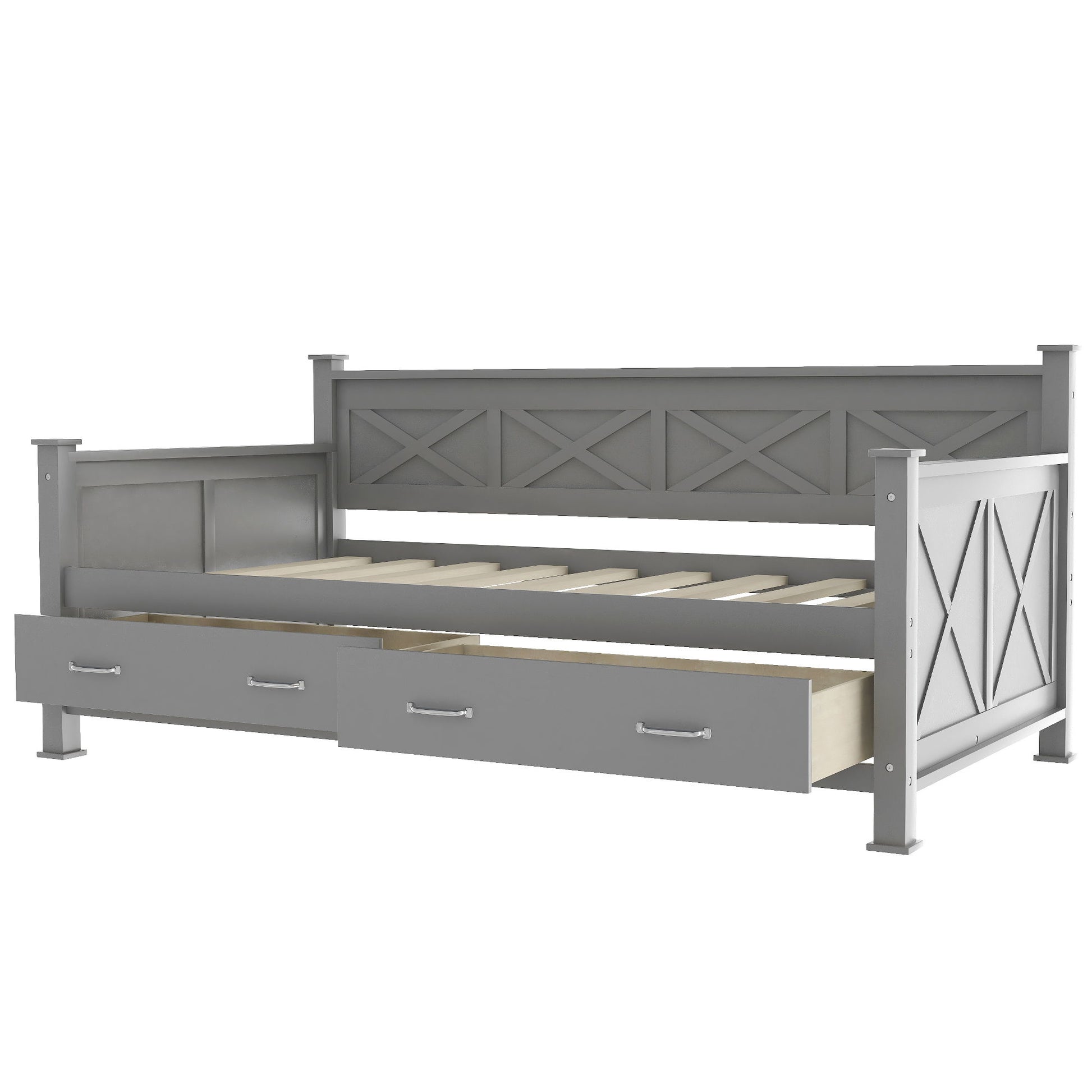 Twin Daybed With 2 Large Drawers, X Shaped Frame - Gray