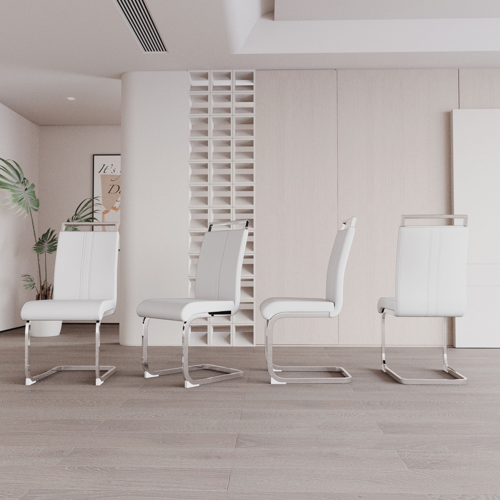 Dining Chairs Set, Kitchen Modern Metal Chairs With Padded Seat High Back (Set of 4) - White