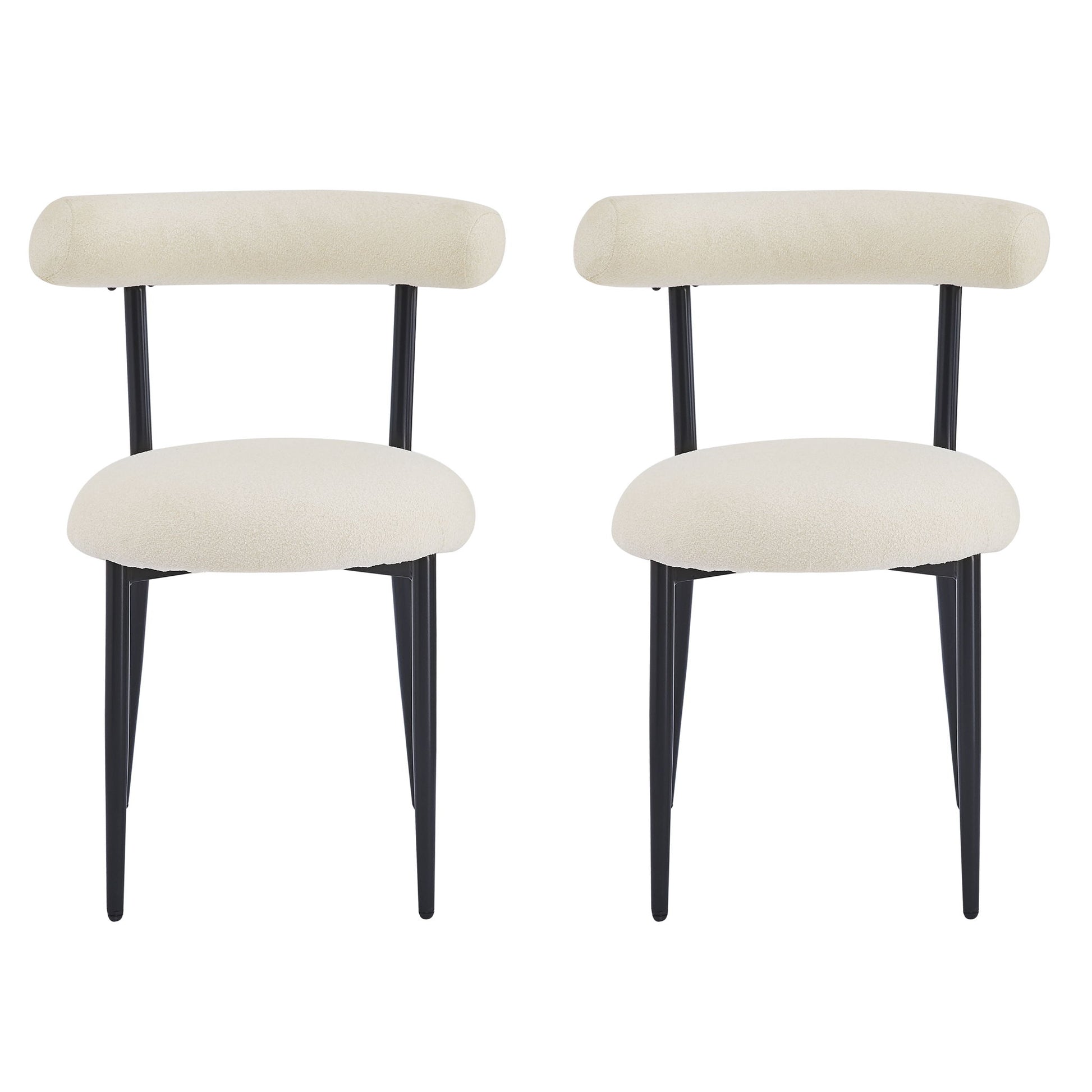 Dining Chair (Set of 2), Modern Dining Room Chairs, Black Metal Frame - White