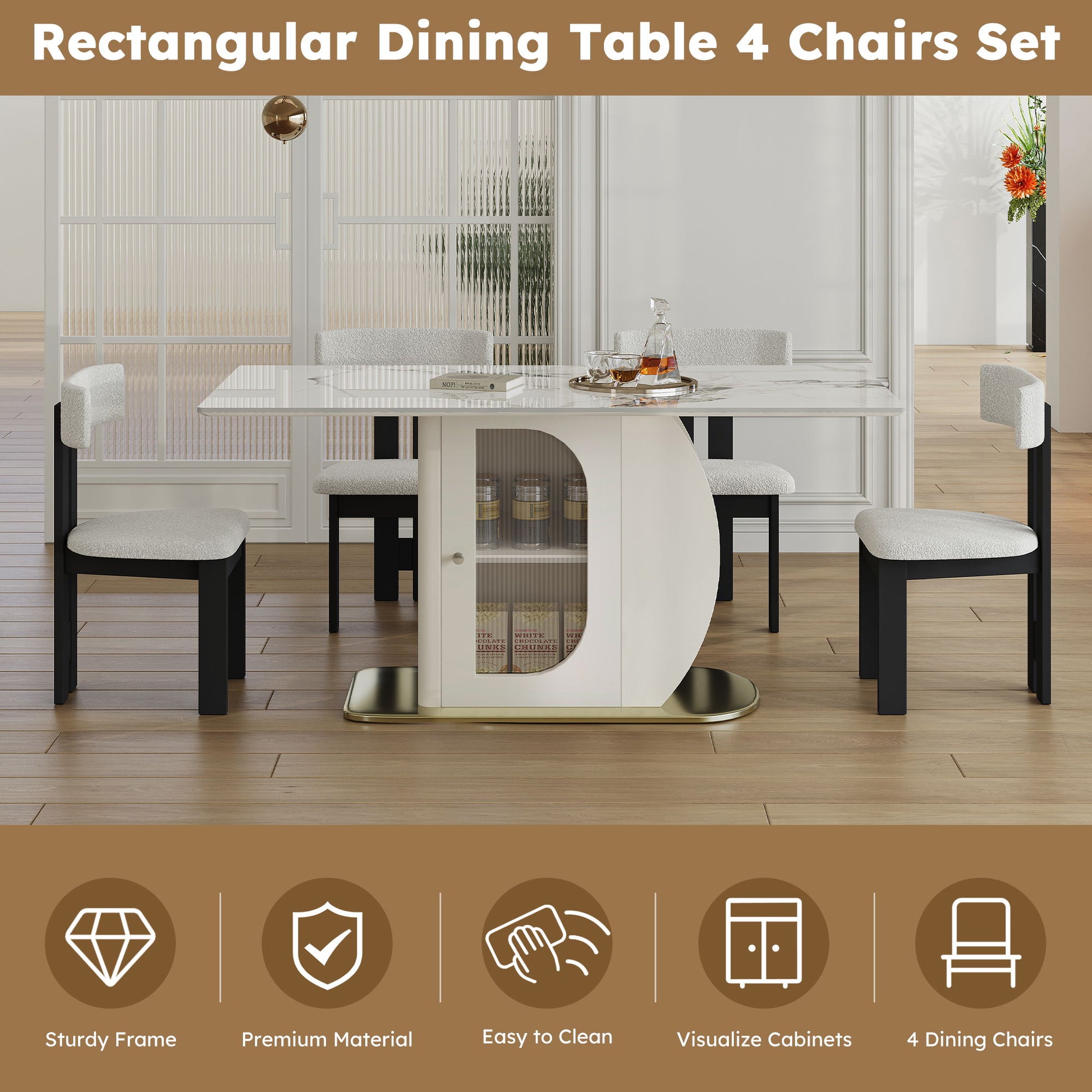 Modern Dining Table Set With Storage, Includes Chairs