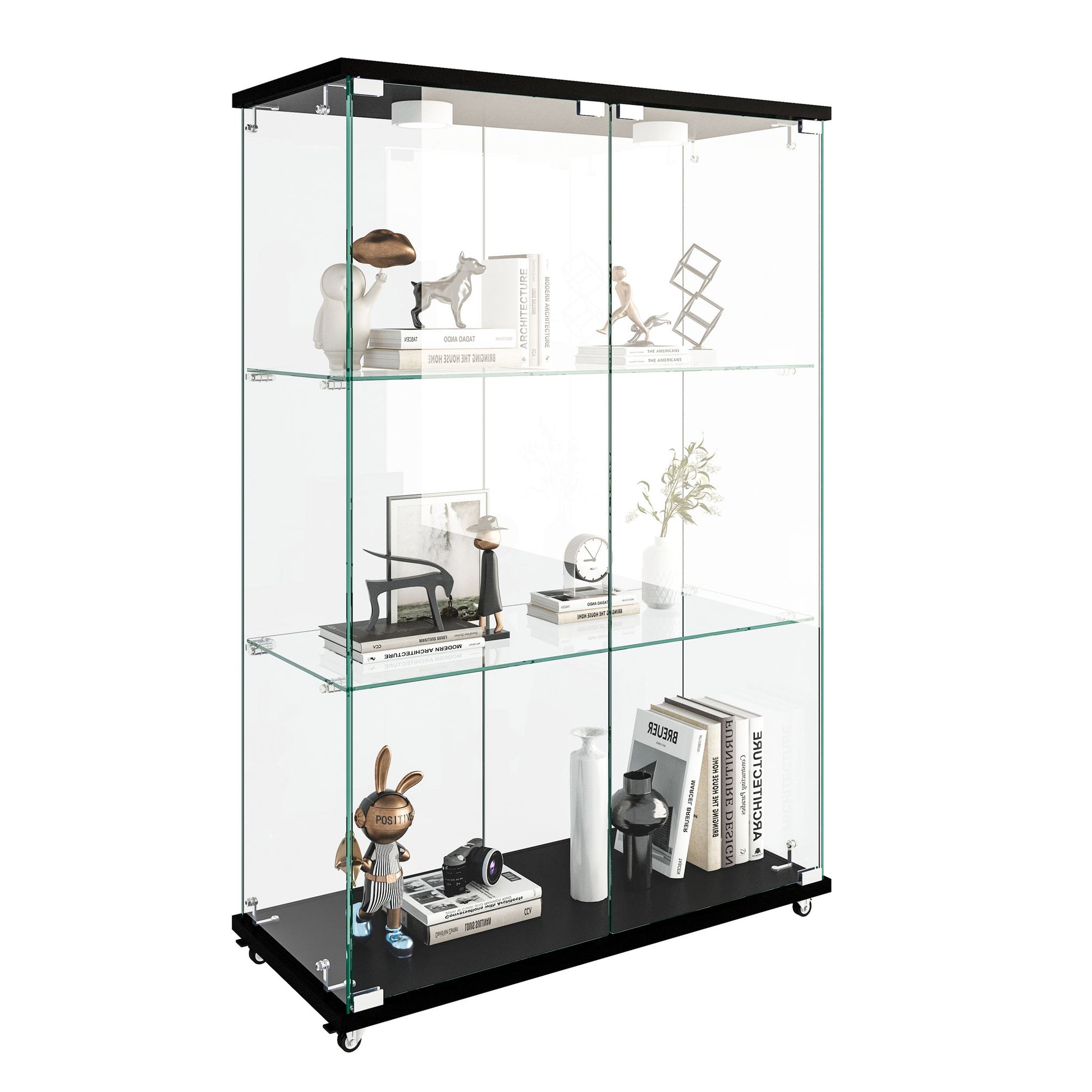 Modern Display Cabinet With LED Lights, Transparent Tempered Glass 2 Door Storage Case With 3 Shelves