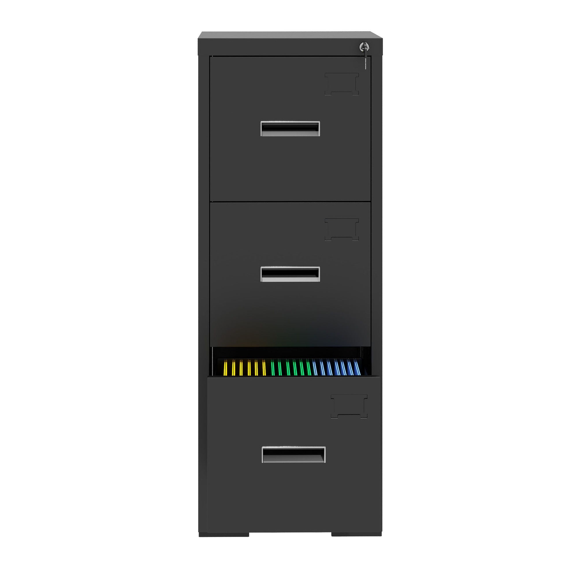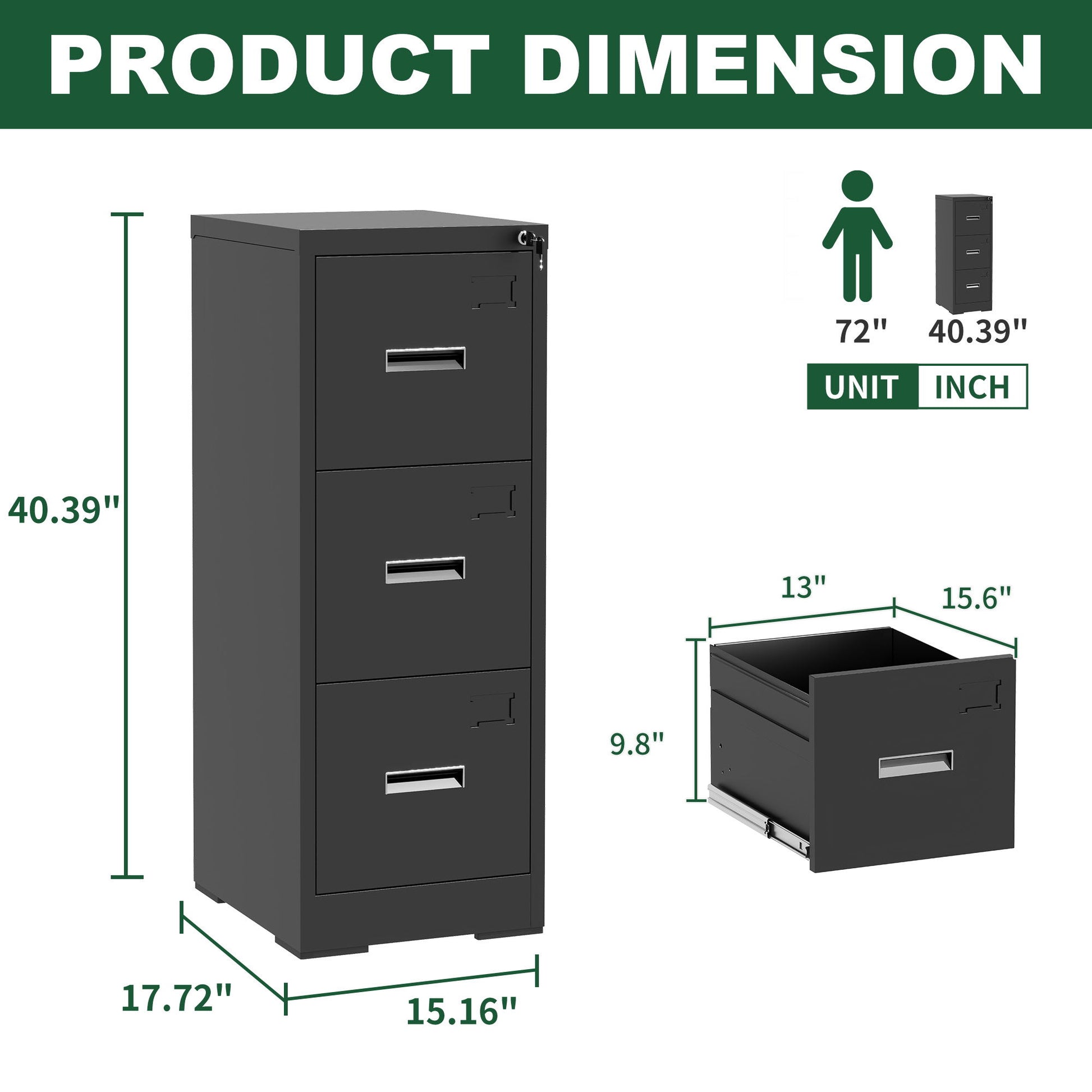 Metal Vertical File Cabinet With Lock And Card Slot For A4 Legal / Letter Size, Durable Steel - Black