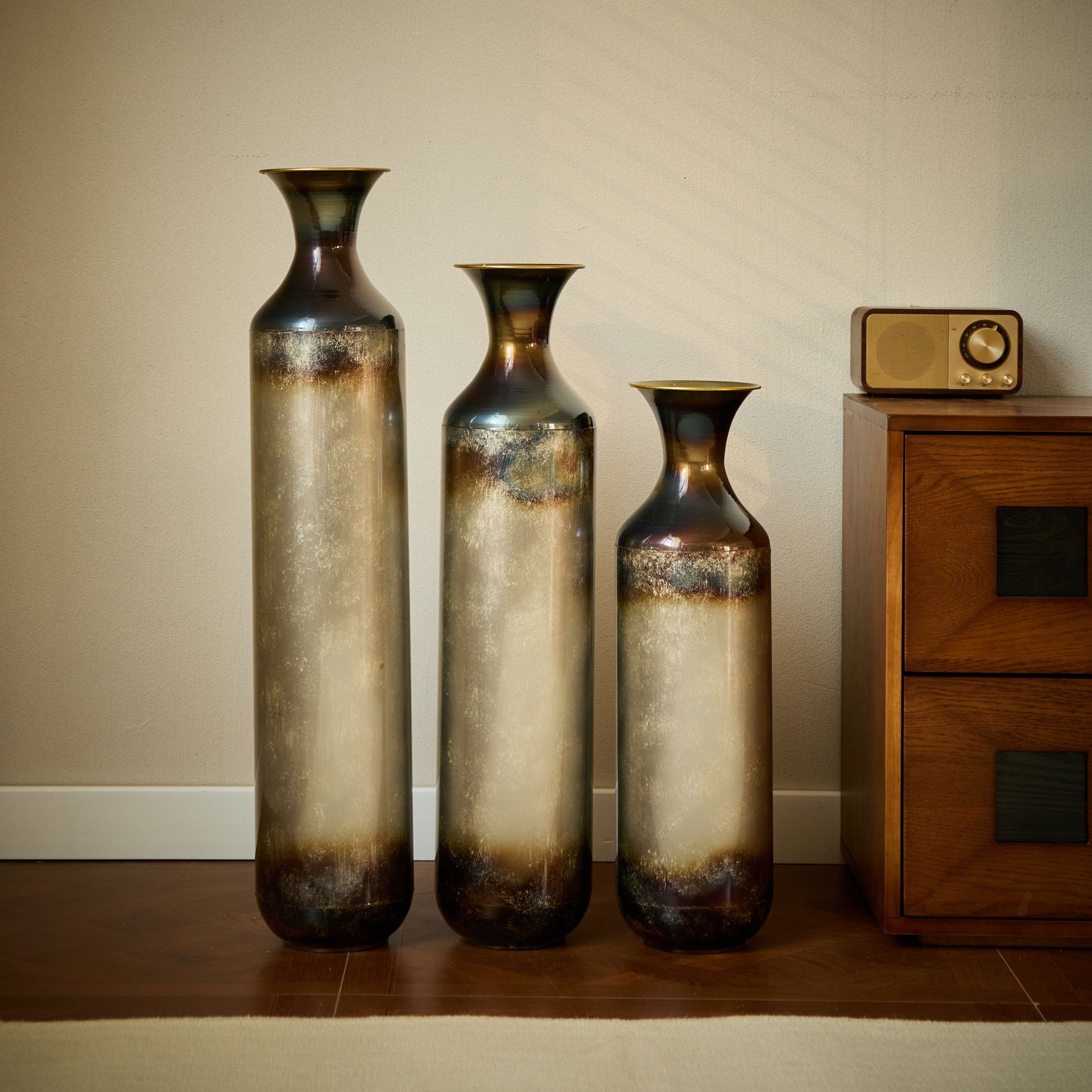 - Ombre Gradient Finish: Each vase features a smoky bronze and pearlized color fade that evokes a burnished ceramic or blown-glass effect with modern appeal.
