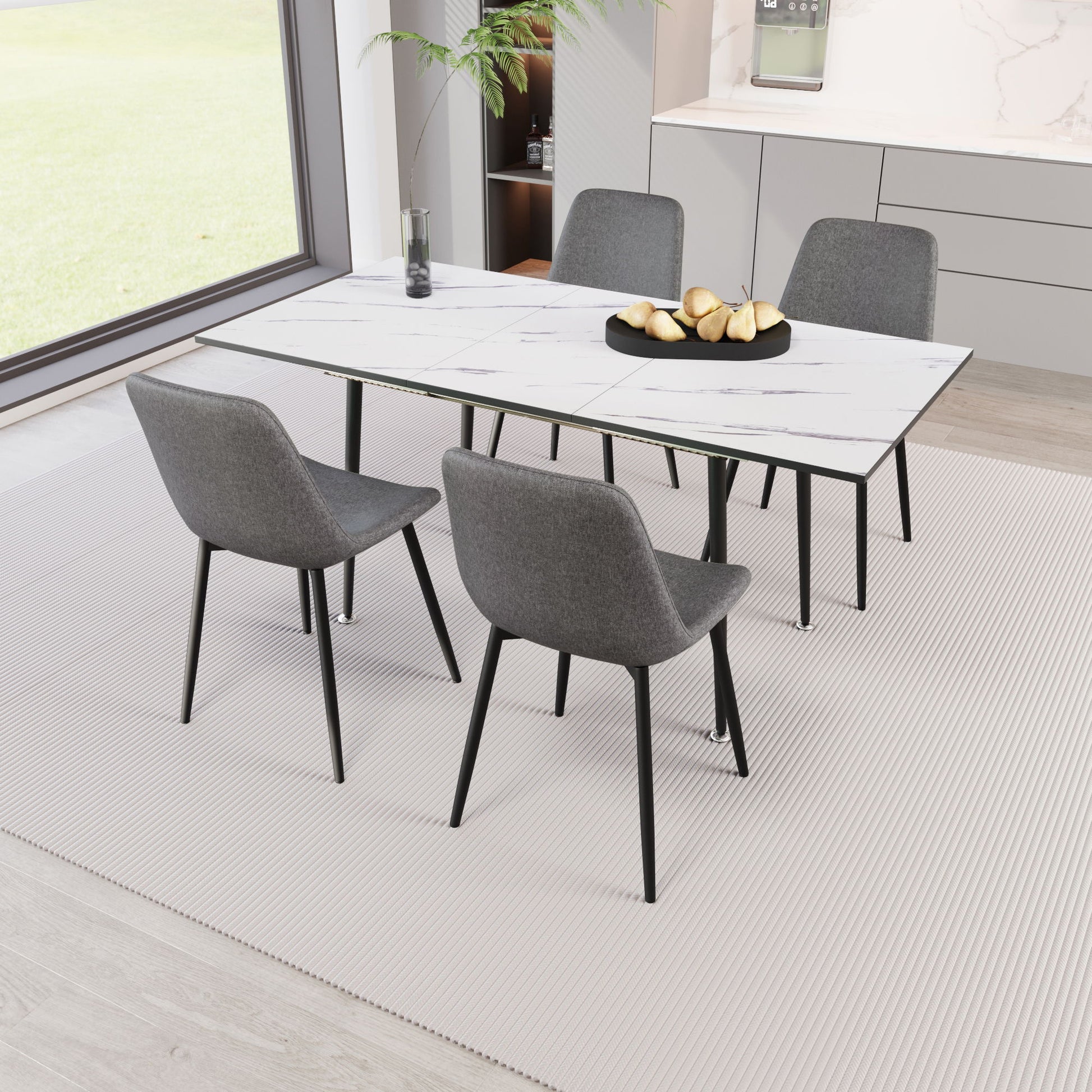 - Modern Design: Features a marble-patterned tabletop with a black metal base for a stylish look.