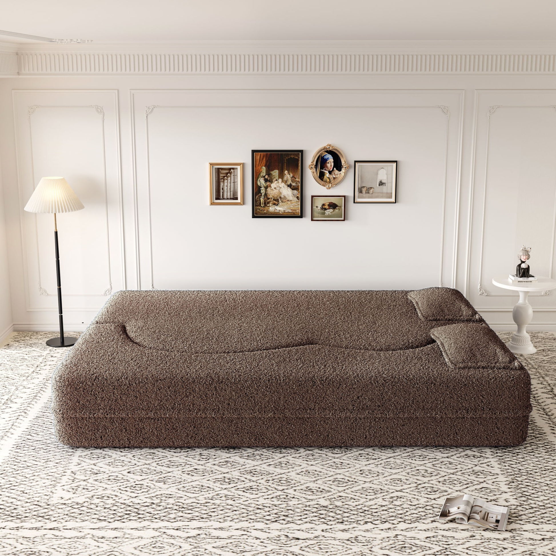 Modern Floor Sofa With 2 Pillows, Convertible Teddy Fabric Foam Filled Sleeper Sofa Bed, Full Size Folding Mattress For Living Room Guest Bed, Playroom, No Assembly Required - Brown