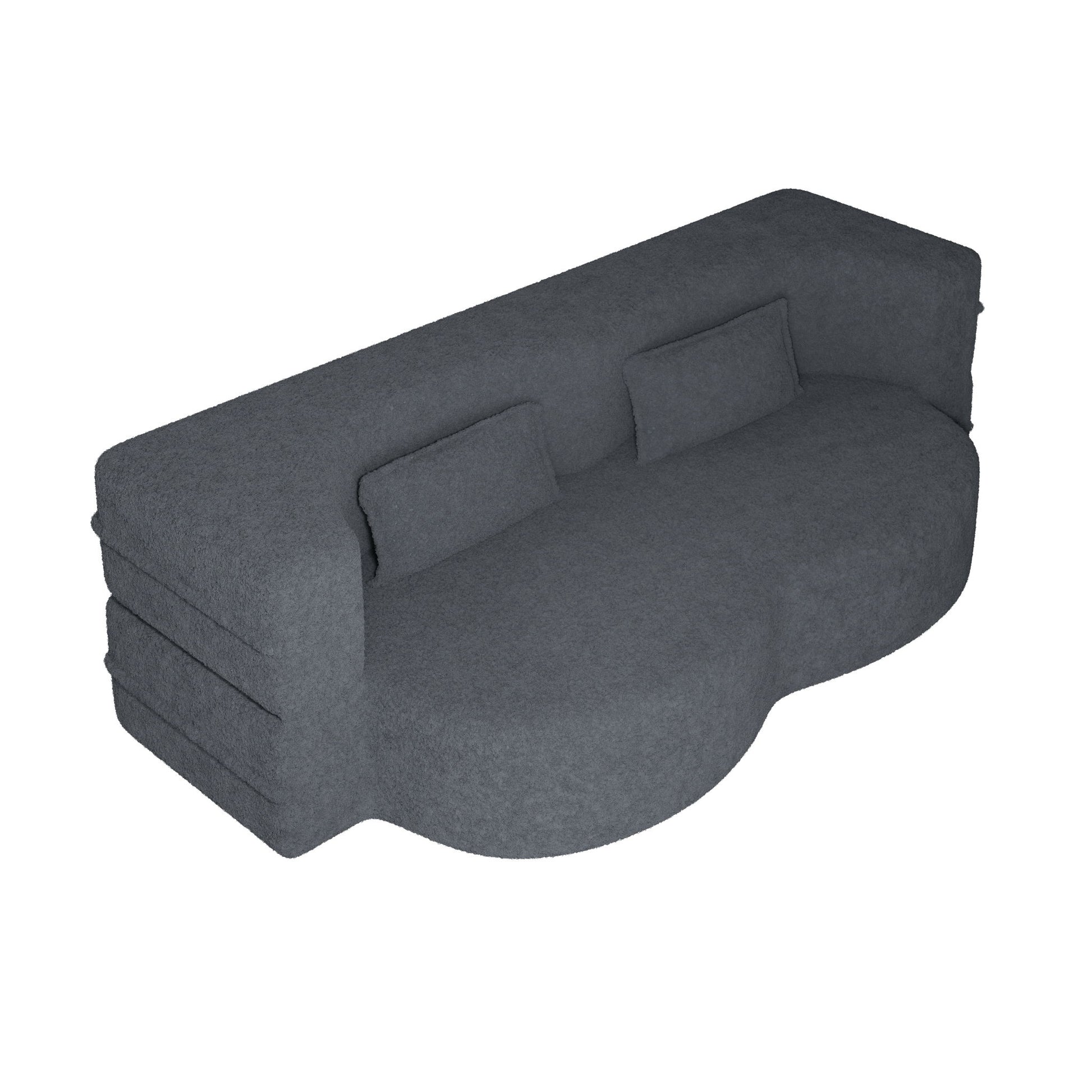 Modern Floor Sofa, With 2 Pillows, Convertible Teddy Fabric Foam Filled Bed