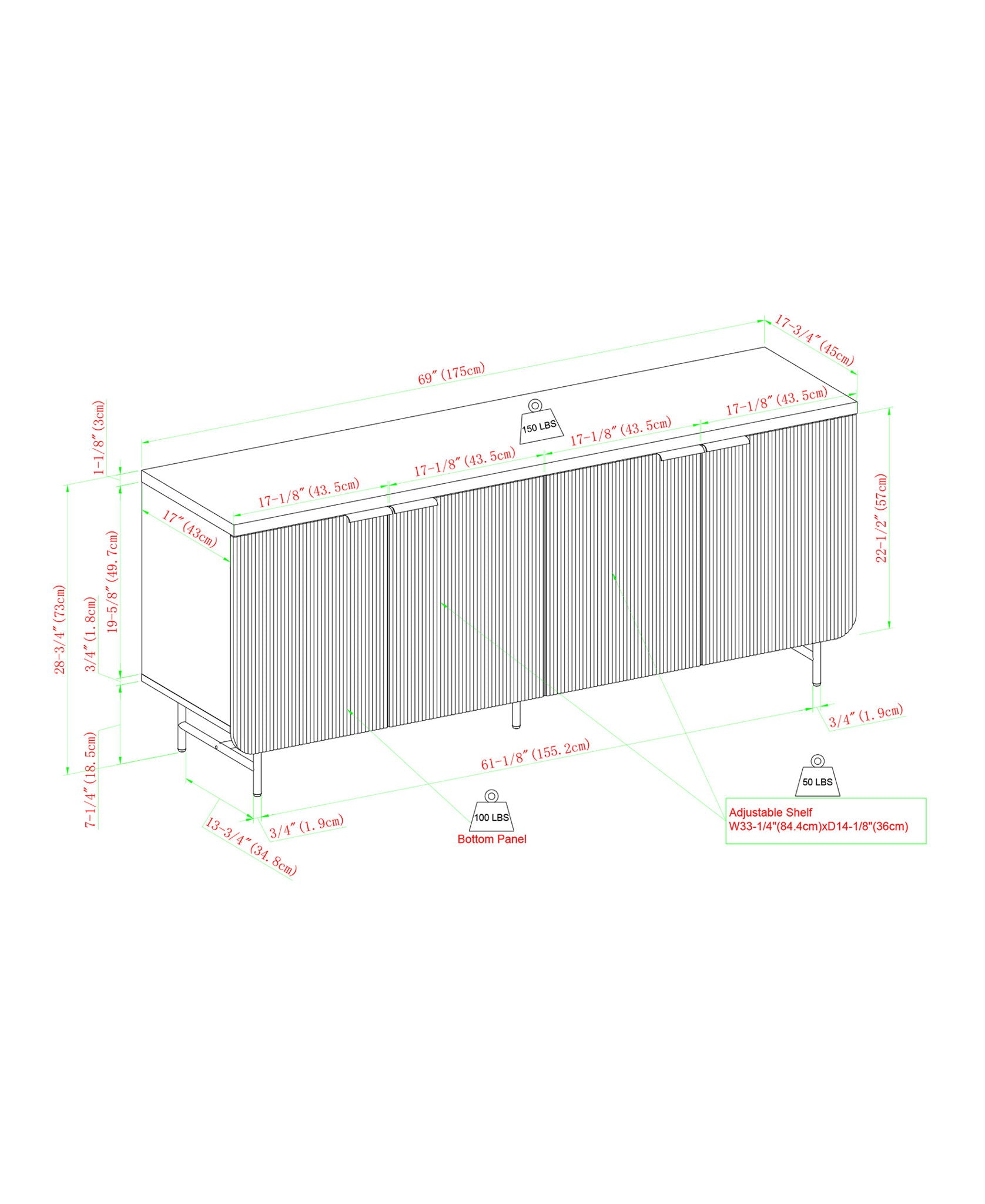 Modern Fluted Door Minimalist Storage Sideboard - Coastal Oak / Black