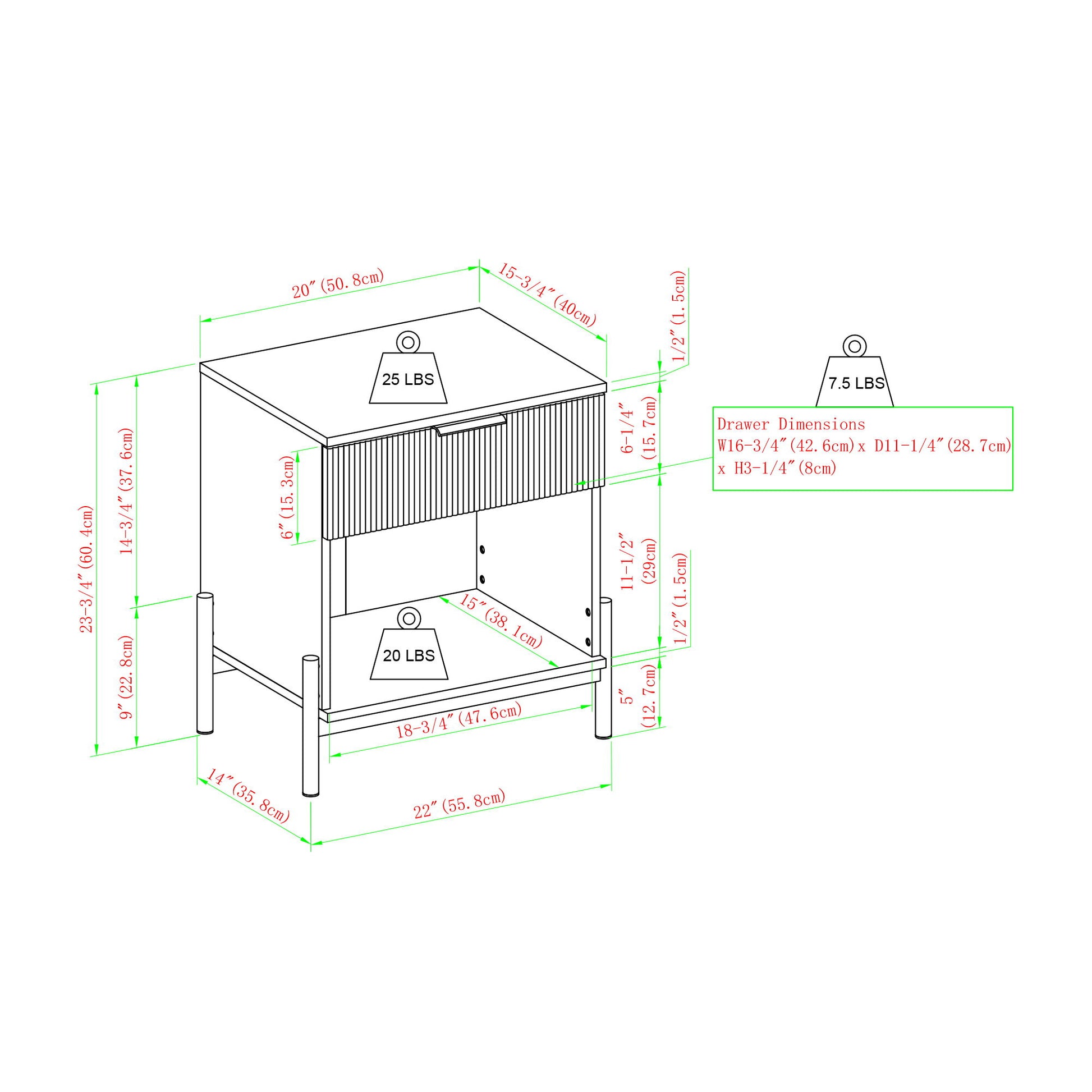 22.0"W x 15.75"D x 24.0"H - 40.0 lb