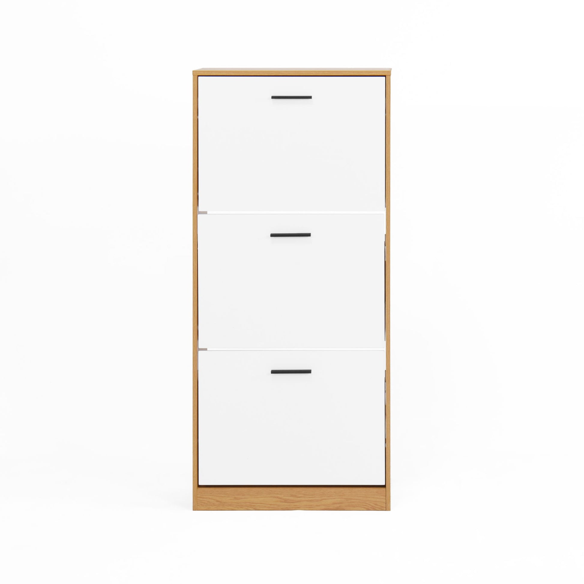 Freestanding Shoe Storage Cabinet With 3 Flip Drawers - White / Natural